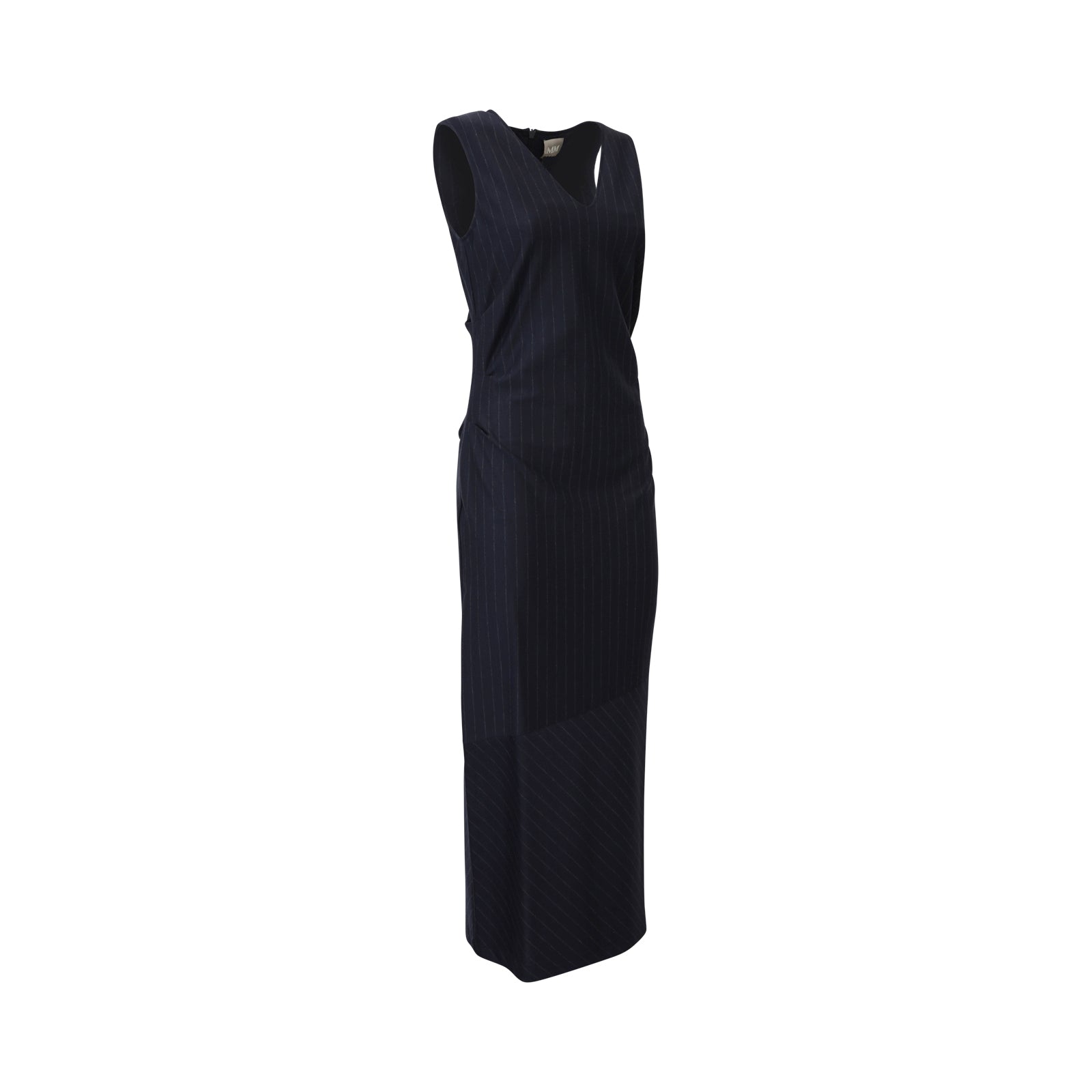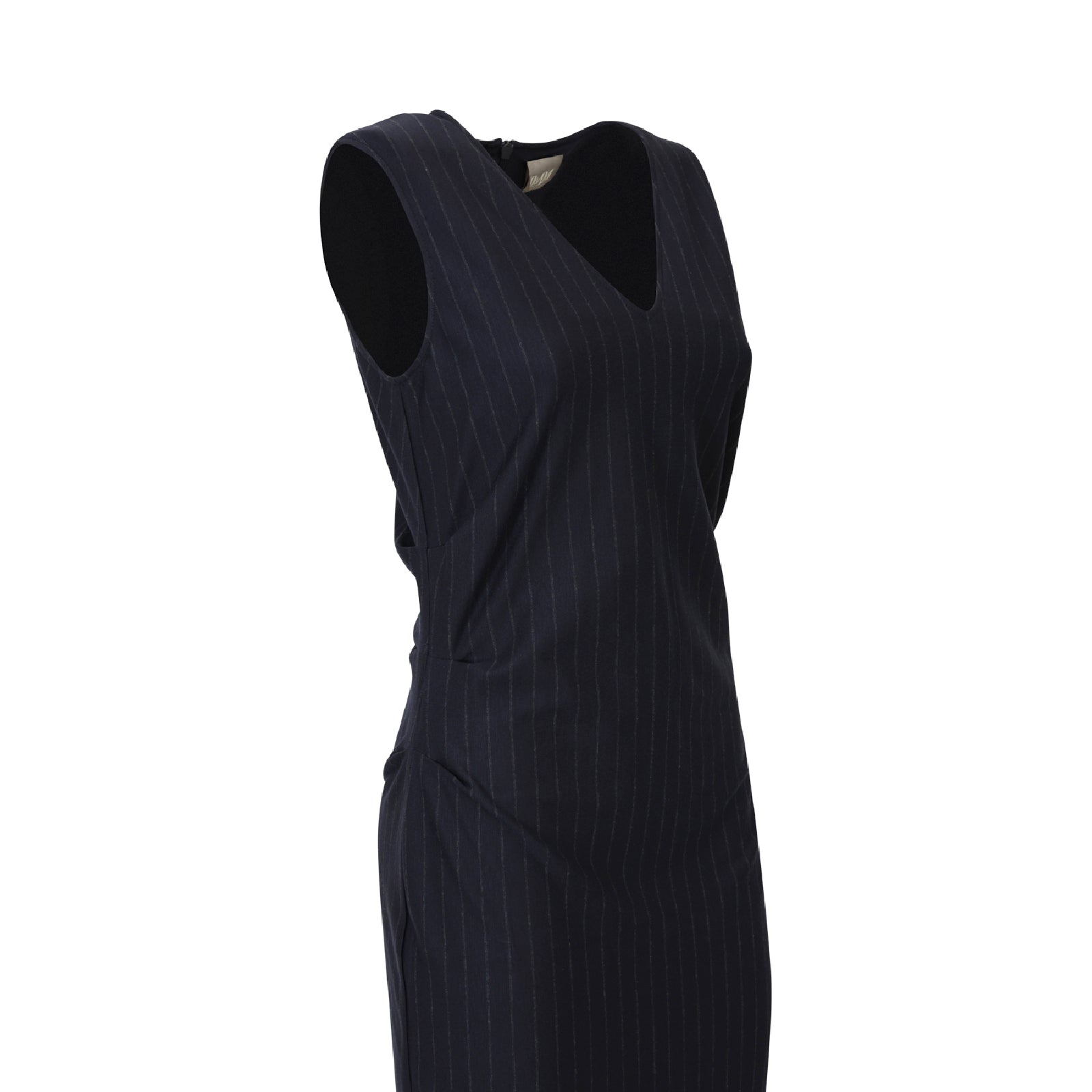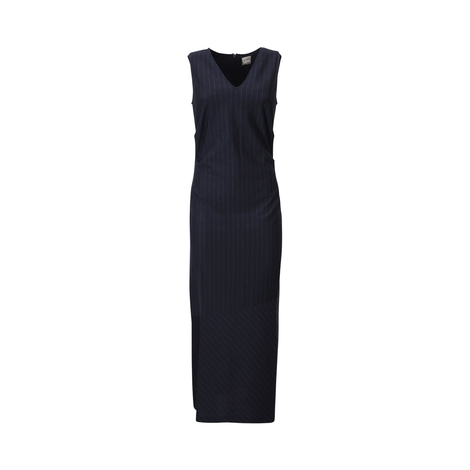 Abito NEWPORT blu di MM MAX MARA in viscosa con effetto gessato, scollo a V, giromaniche, fit aderente.
