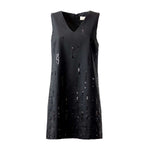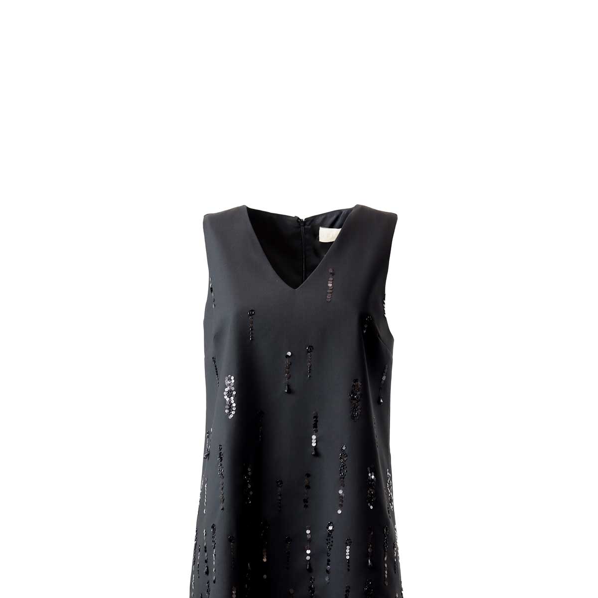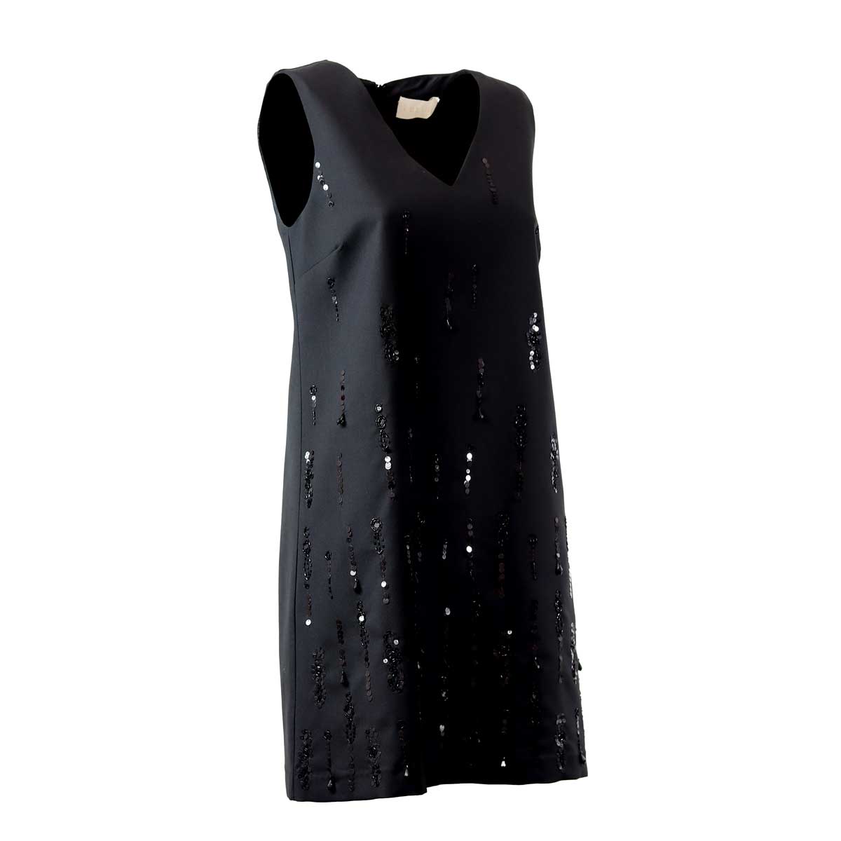 Abito OXALIS nero di IBLUES in poliestere con paillettes e applicazioni ricamate, scollo a V, giromaniche, chiusura con zip posteriore. Linea ad A e fit regolare.