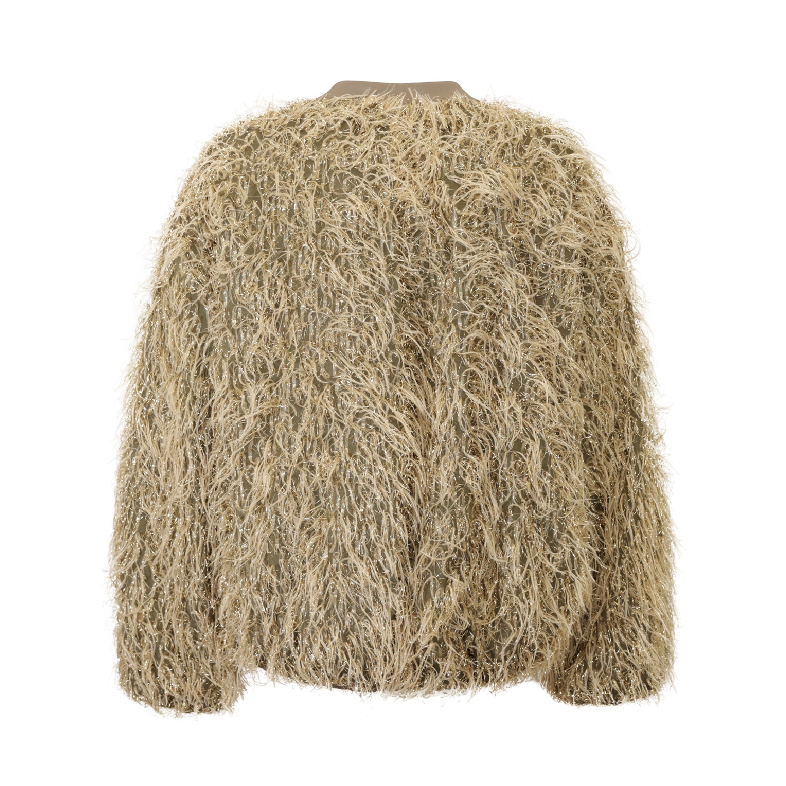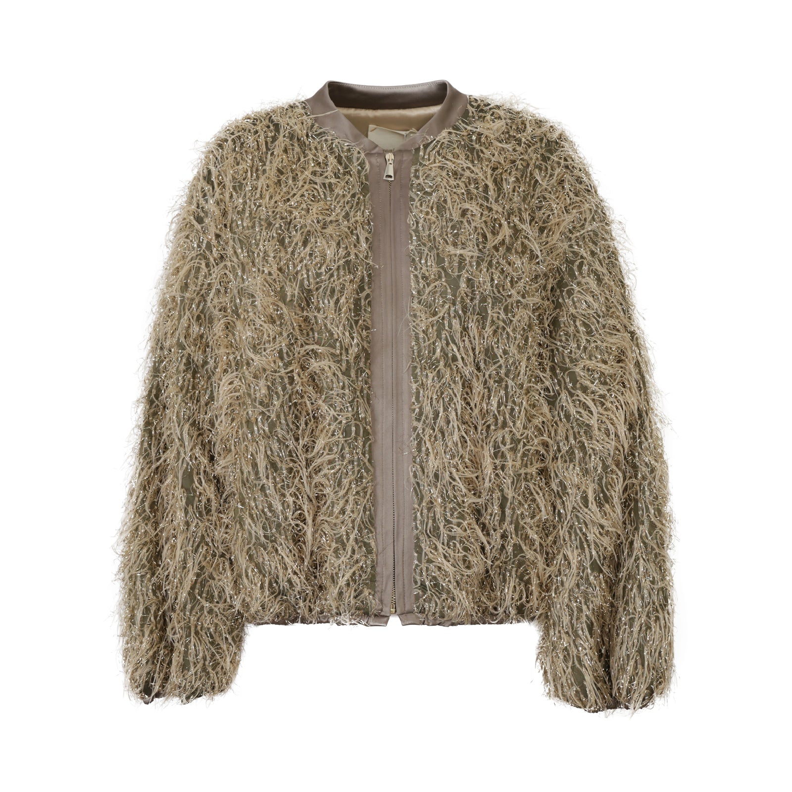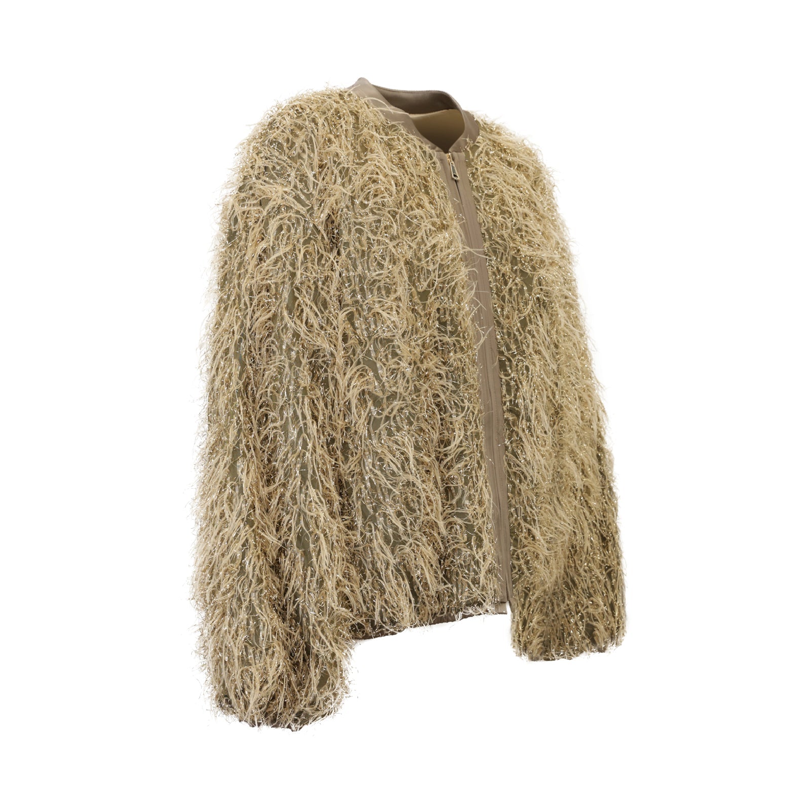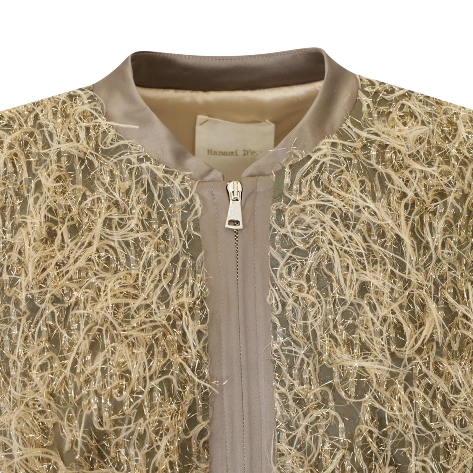 Bomber TAMIR gold di HANAMI D'OR in jacquard plume con riporti in raso a contrasto, manica lunga e chiusura con zip.