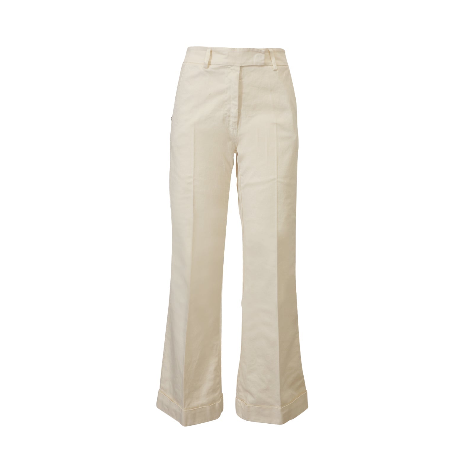 Bull denim bianco di ANOTHER LABEL in cotone con modello tasca america, tasche posteriori a filetto, vita alta, modello a zampa.