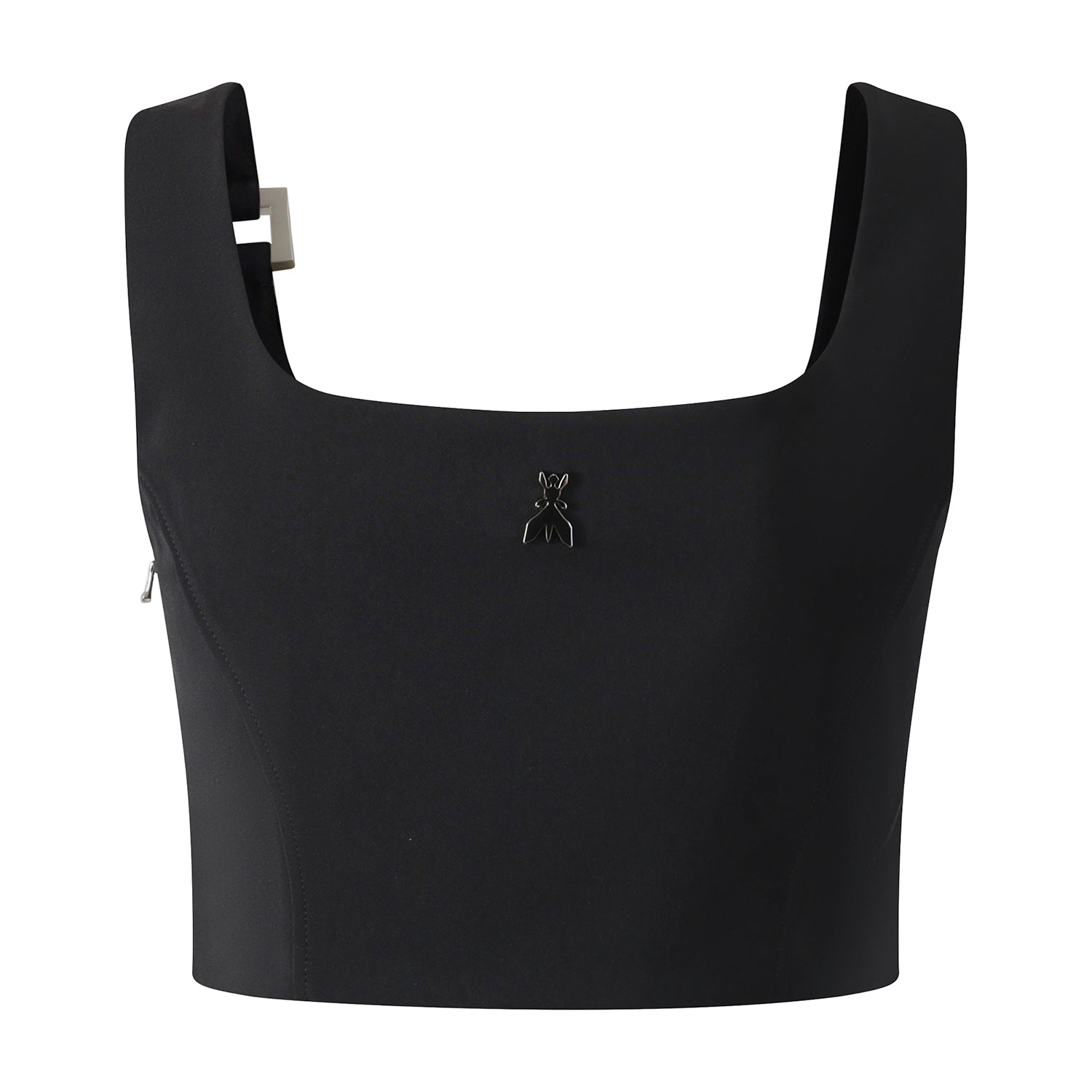 Bustier nero di PATRIZIA PEPE in crepe stretch con scollo tondo, zip laterale.