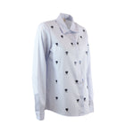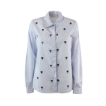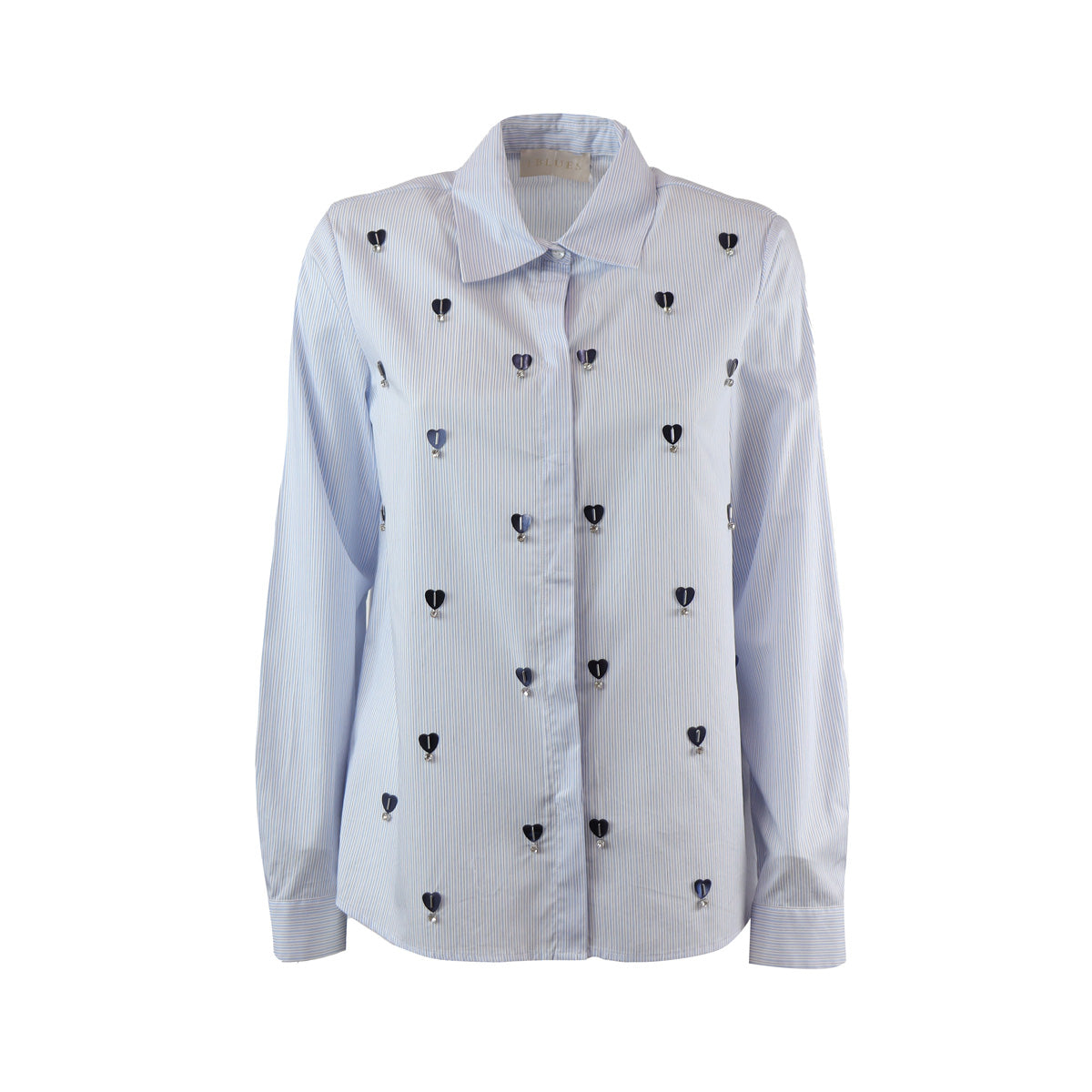 Camicia BERNINI azzurra di IBLUES in popeline di cotone con linea dritta, colletto e maniche lunghe, chiusura con bottoni nascosti e ricami con gioiellini. Fit aderente.