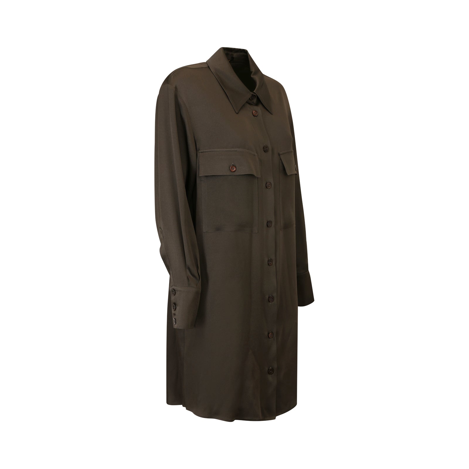 Camicia TOLKA grigia di HANAMI D'OR in crepe con modello over, lunga, chiusura con bottoni, tasche con patte.
