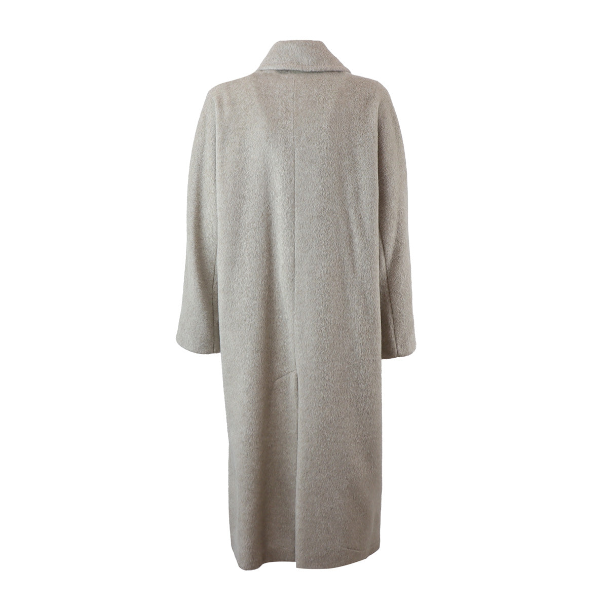 Cappotto ADDOBBO beige di IBLUES in misto lana con modello doppio petto, cintura in vita, collo a rever, cintura abbinata, tasche a filetto e spacco posteriore. Fit regolare.