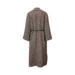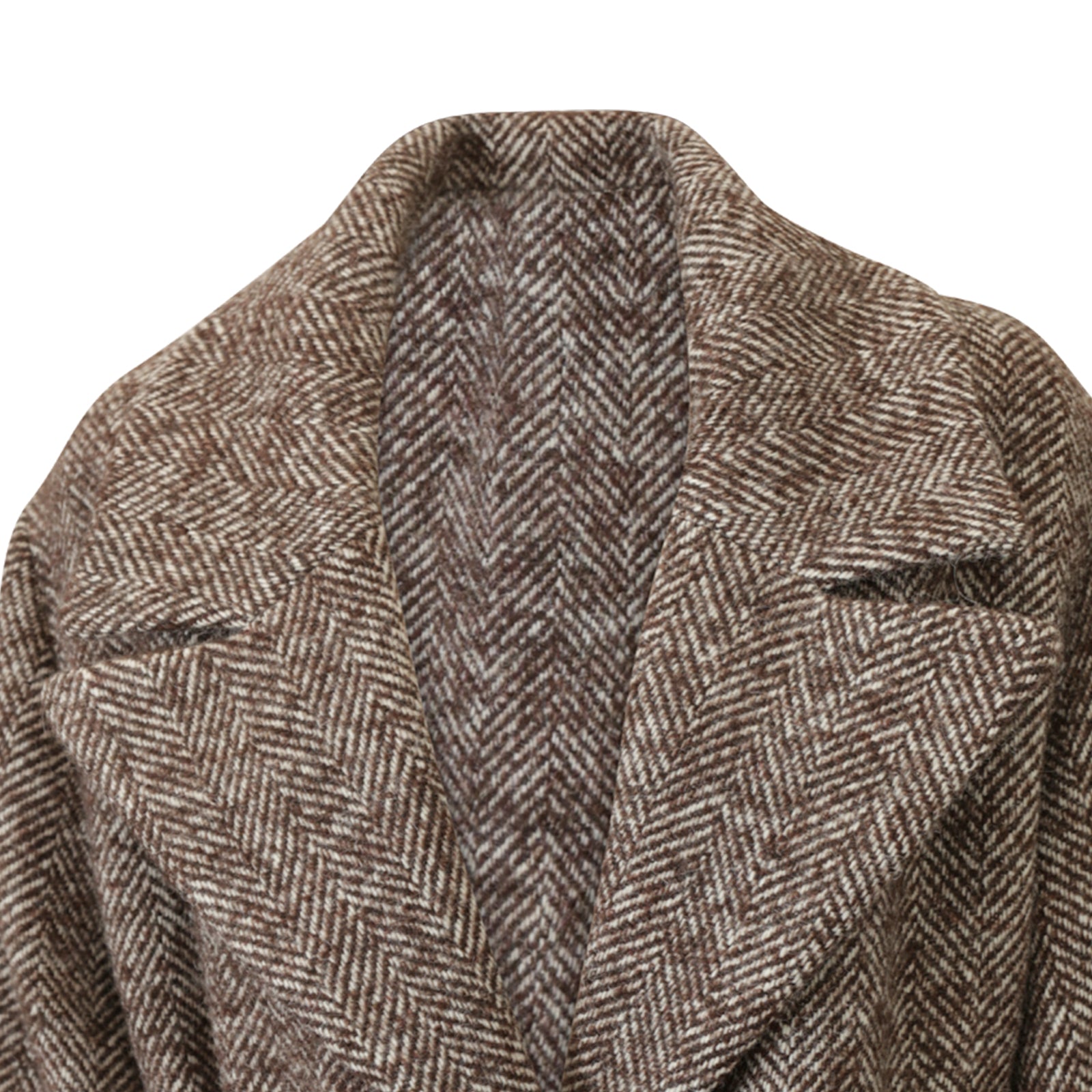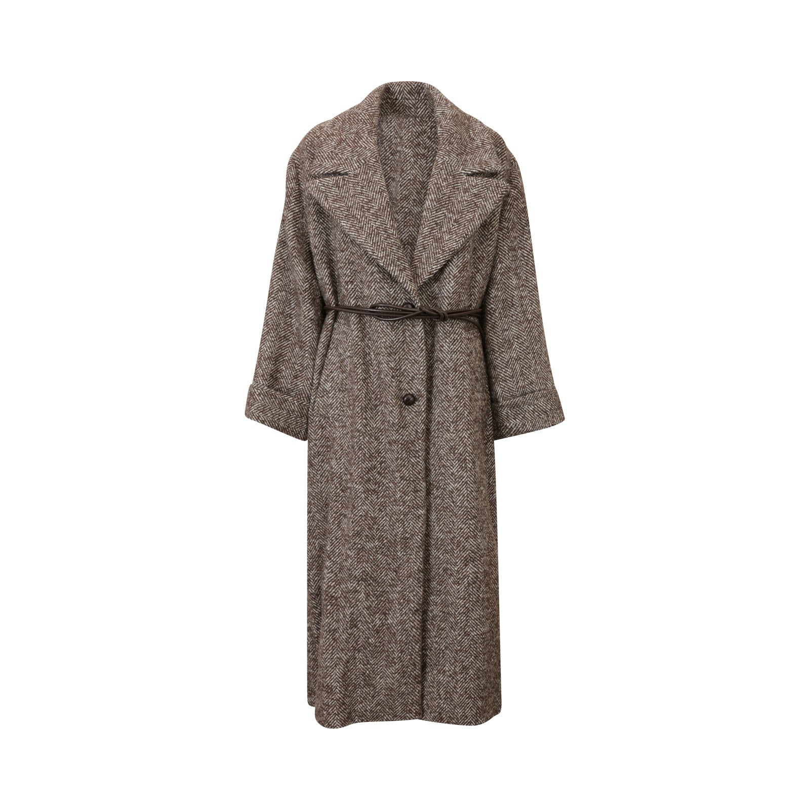 Cappotto lungo TORINO spigato di HANAMI D'OR in lana e alpaca con collo a rever classico, chiusura con bottoni, tasche laterali cintura in pelle in vita.