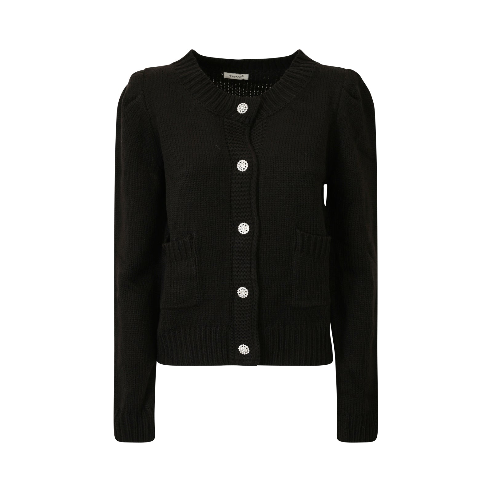 Cardigan nero di T by ME in misto lana con bottoni con accessori, tasche applicate e bordi a coste.