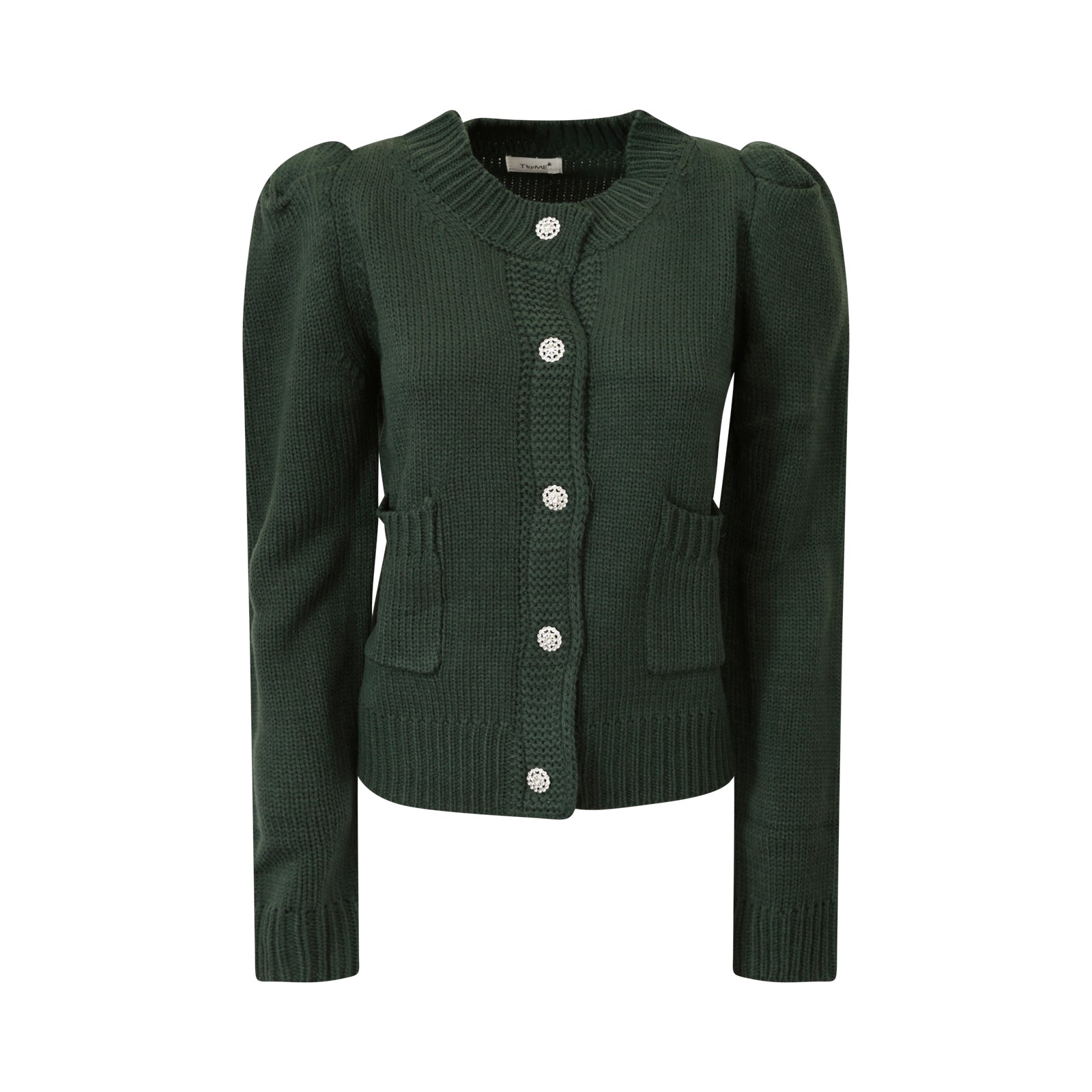 Cardigan verde di T by ME in misto lana con bottoni con accessori, tasche applicate e bordi a coste.