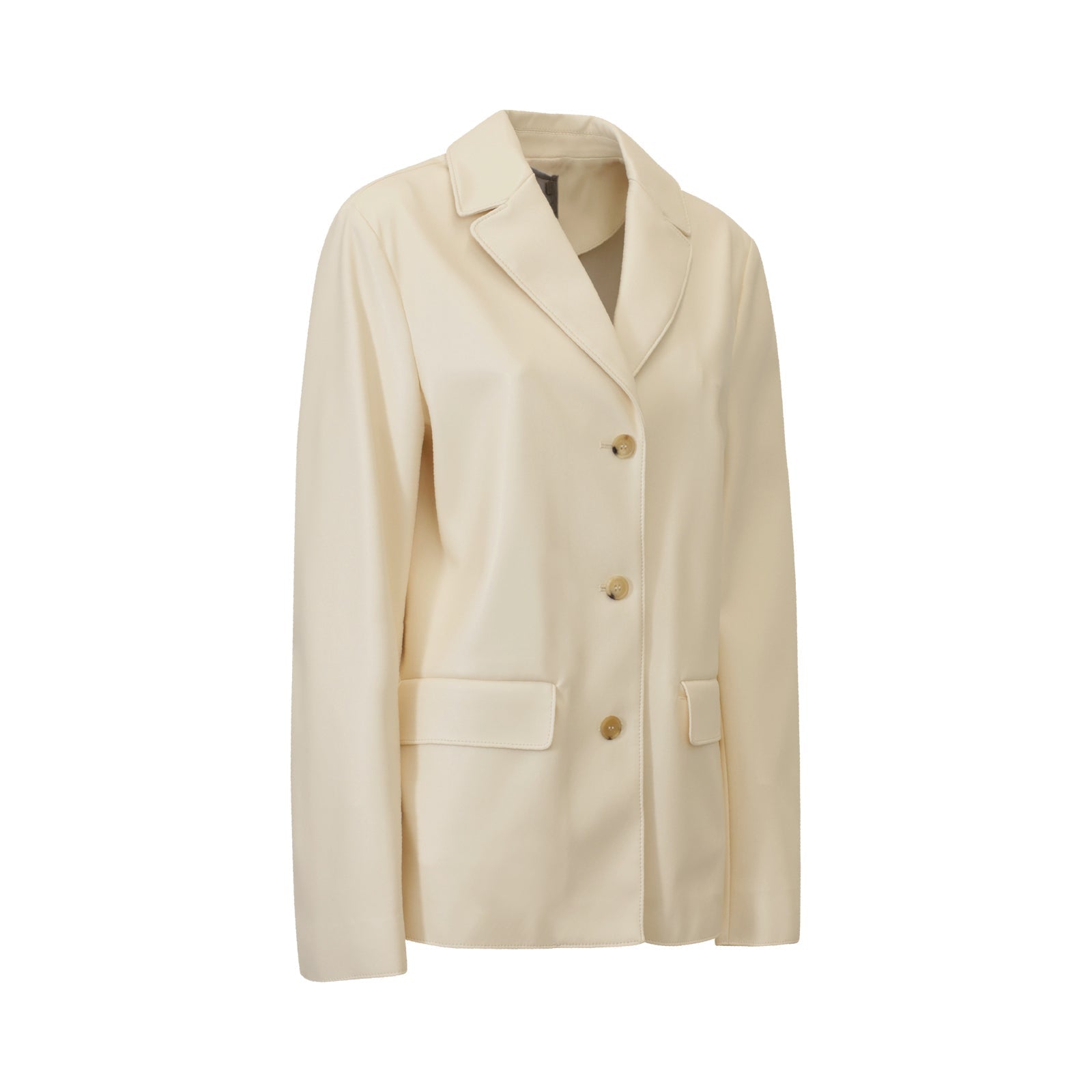 Giacca ALBATRO off white di MM MAX MARA in poliestere con collo a rever classico, monopetto con 3 bottoni, tasche con patte.