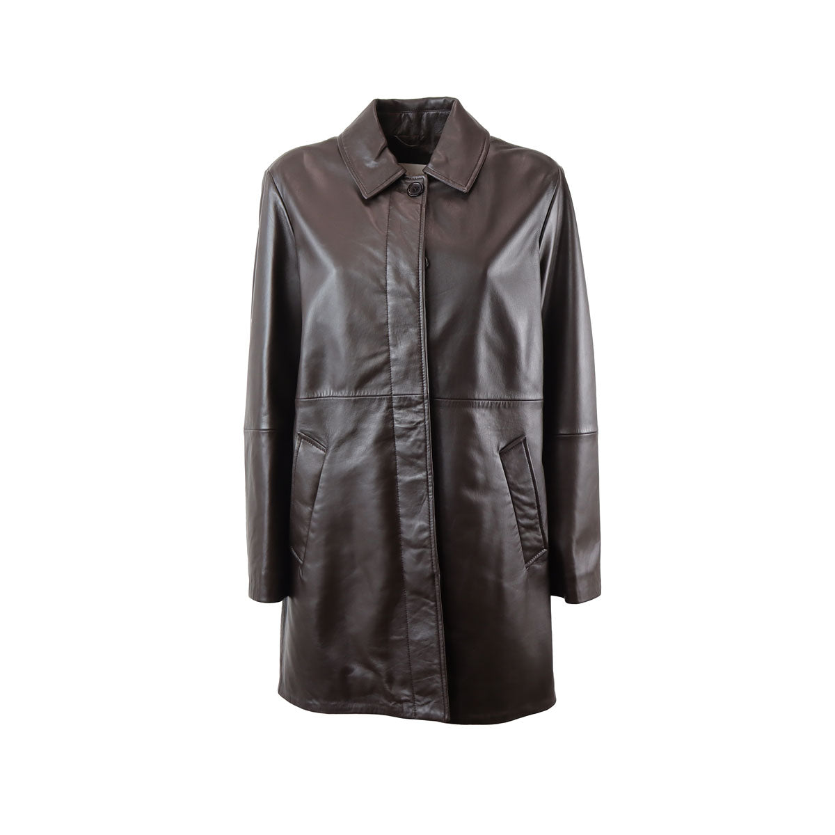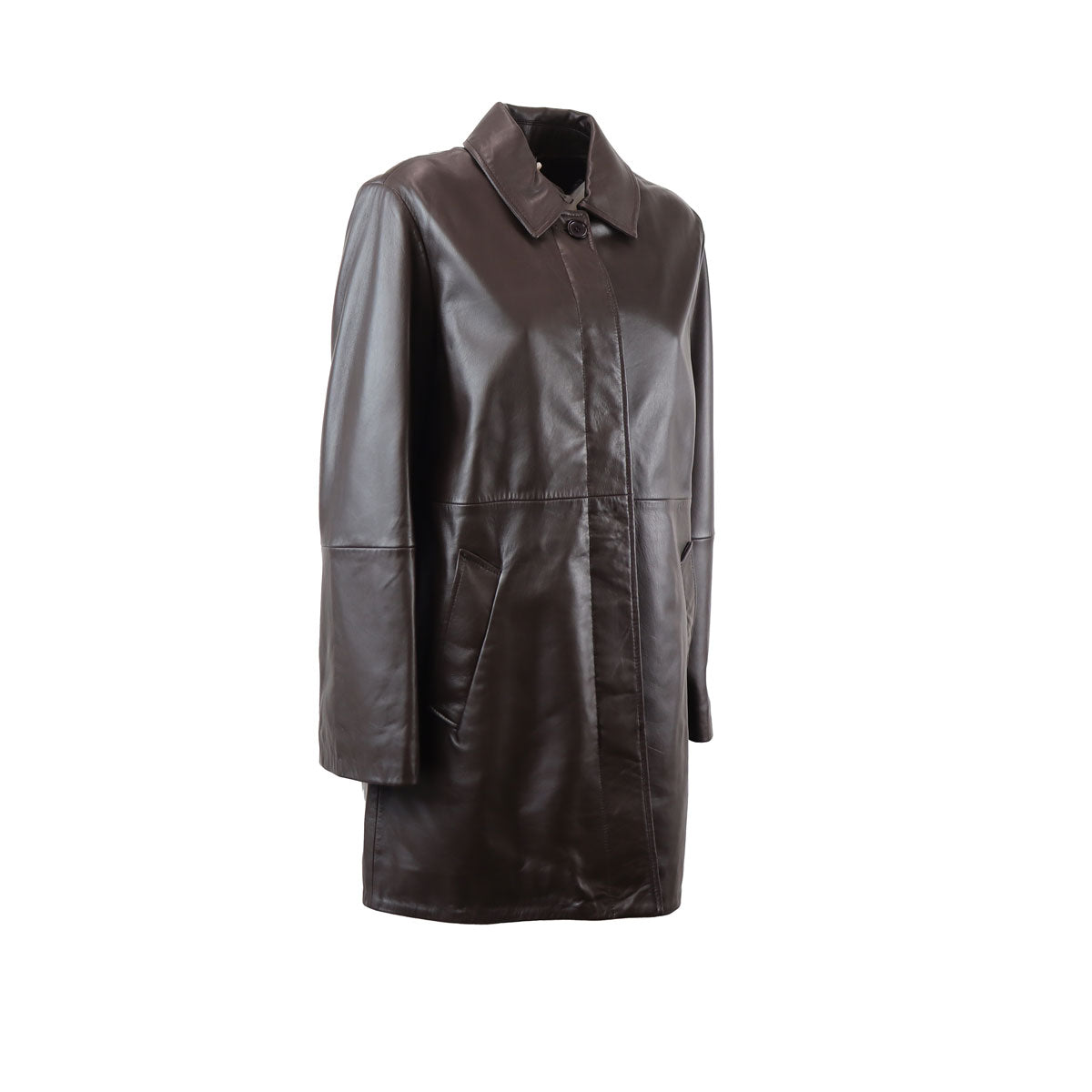 Giacca DOMINO marrone di IBLUES in pelle con effetto nappa, collo camicia, chiusura con bottoni. Fit regolare.