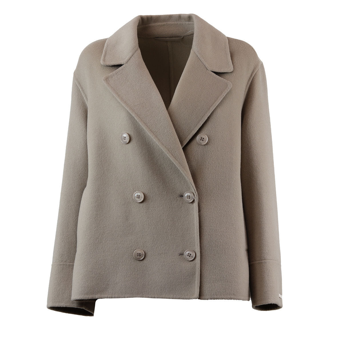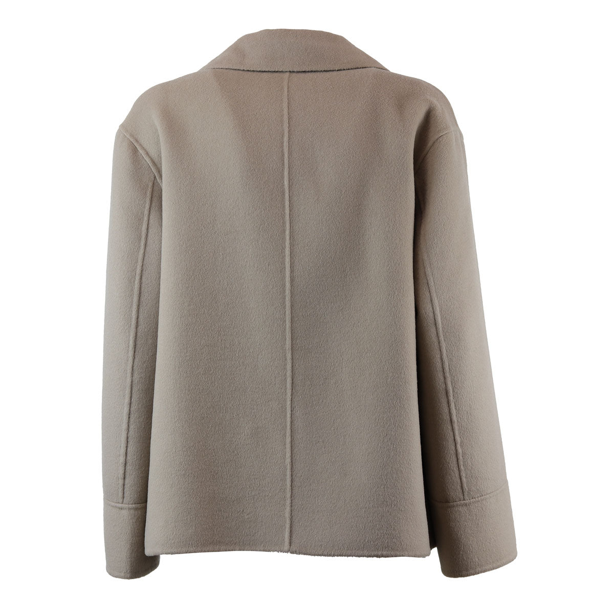Giacca MURO beige di IBLUES in misto lana con collo a rever, chiusura a doppio petto con bottoni, tasche a filetto. Fit ampio.