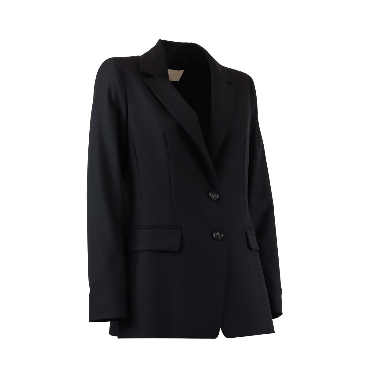 Giacca QUARK nera di IBLUES in twill stretch con chiusura con due bottoni, tasche a patta, collo a rever e maniche lunghe. Fit regolare.