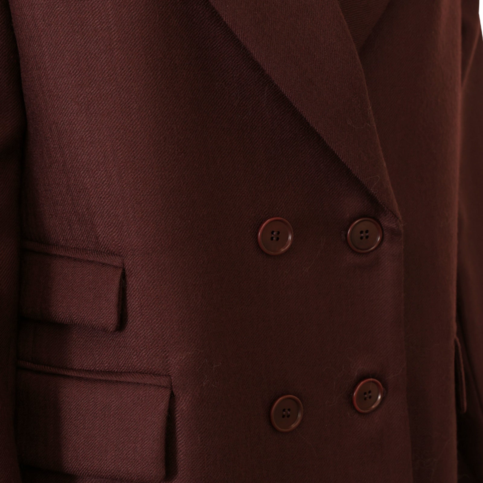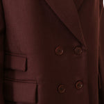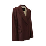 Giacca TAZIA bordeaux di HANAMI D'OR in lana con modello doppio petto, rever classico, tasche con patte e vestibilità boxy.
