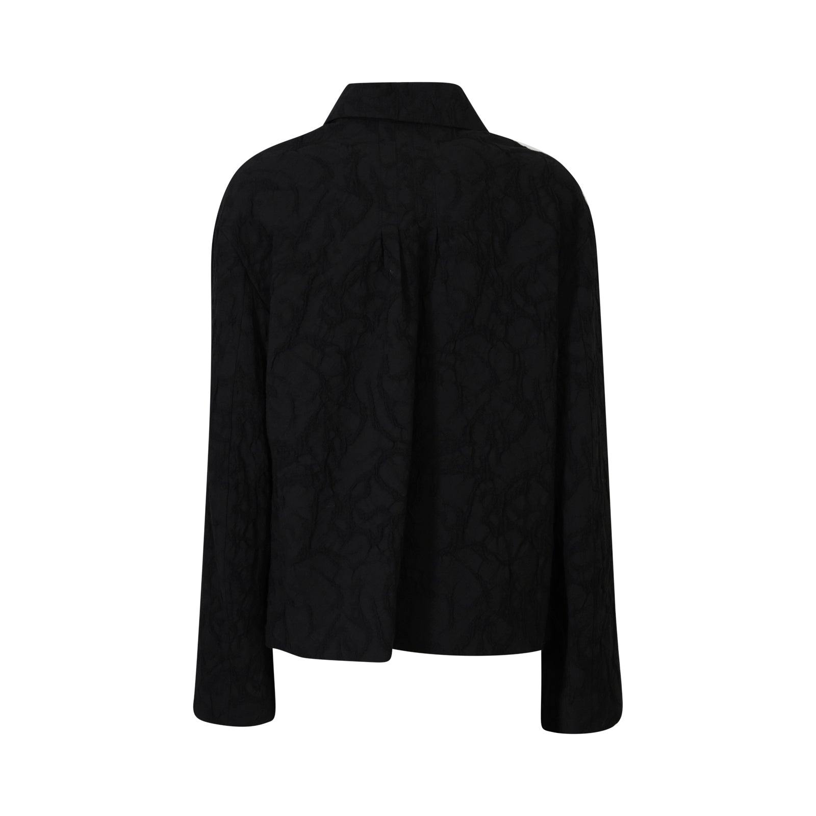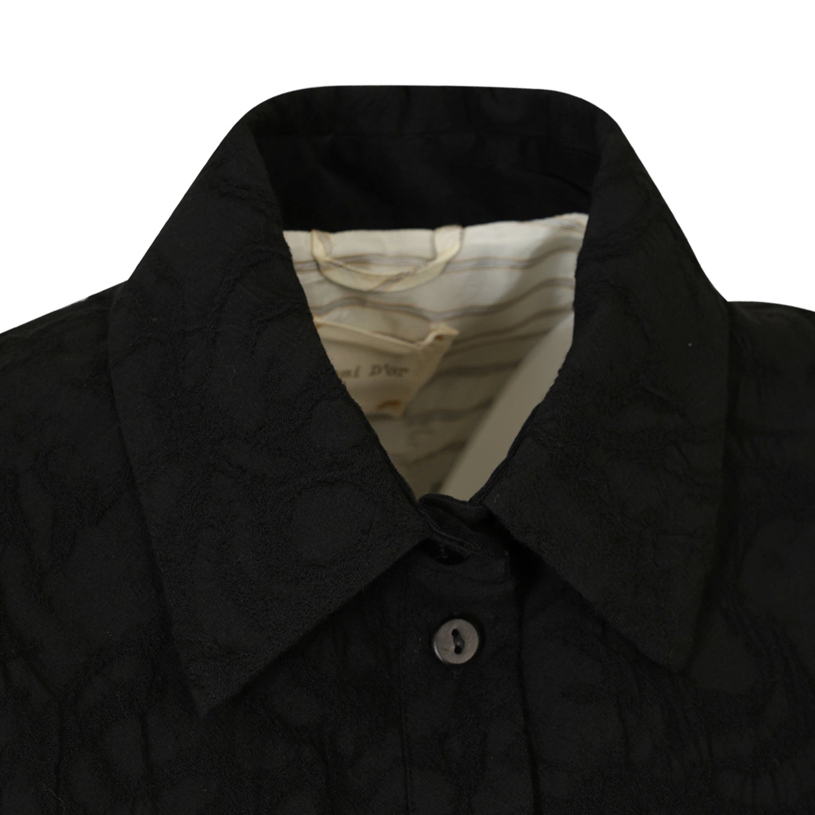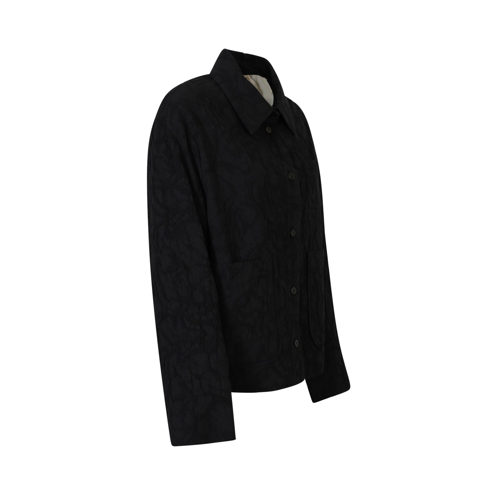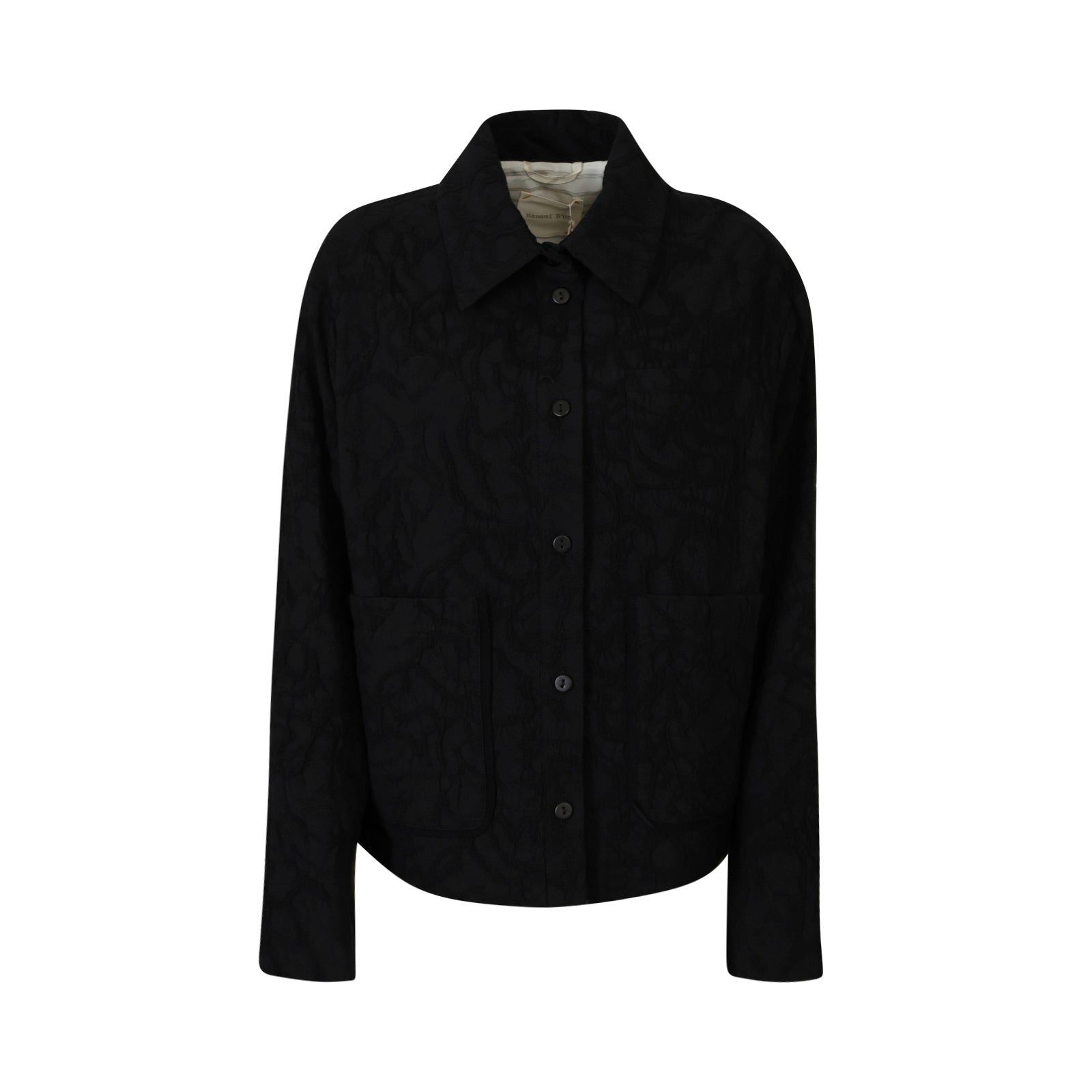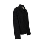 Giacca TONY nera di HANAMI D'OR in cotone e lana con collo camicia, chiusura con bottoni e tasche a toppe.