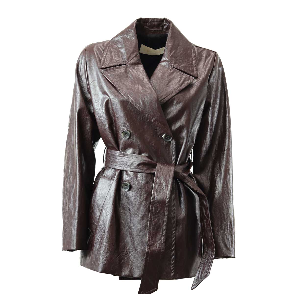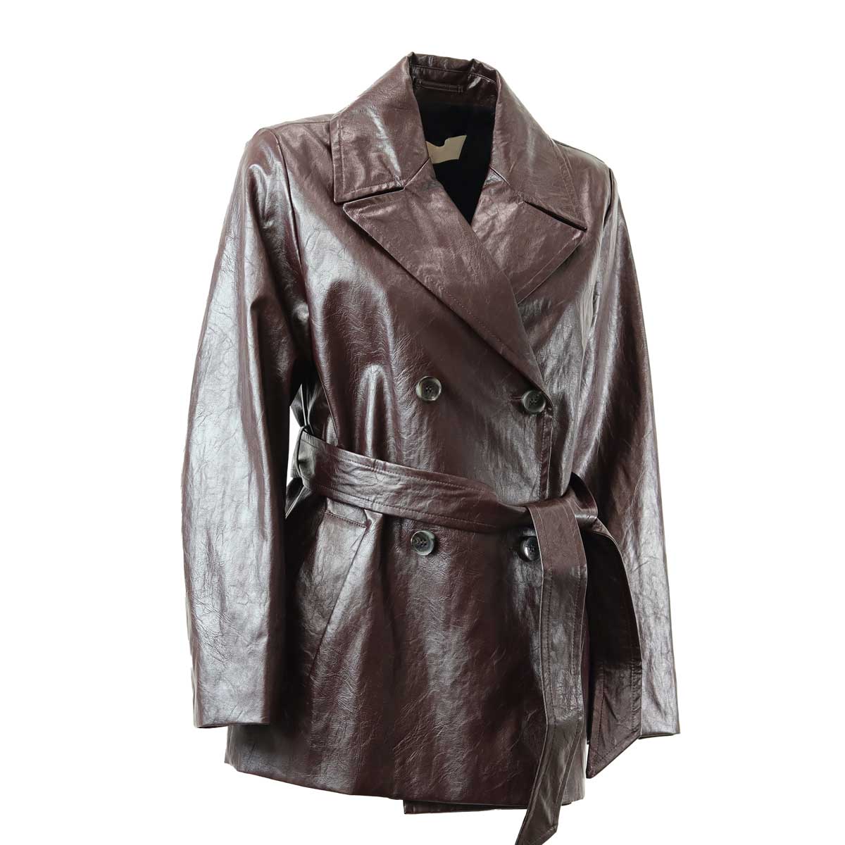Giacca TRENCH bordeaux di IBLUES in ecopelle con doppio petto con bottoni, cintura in vita, tasche a filetto, collo a rever e maniche lunghe. Linea dritta e fit regolare.