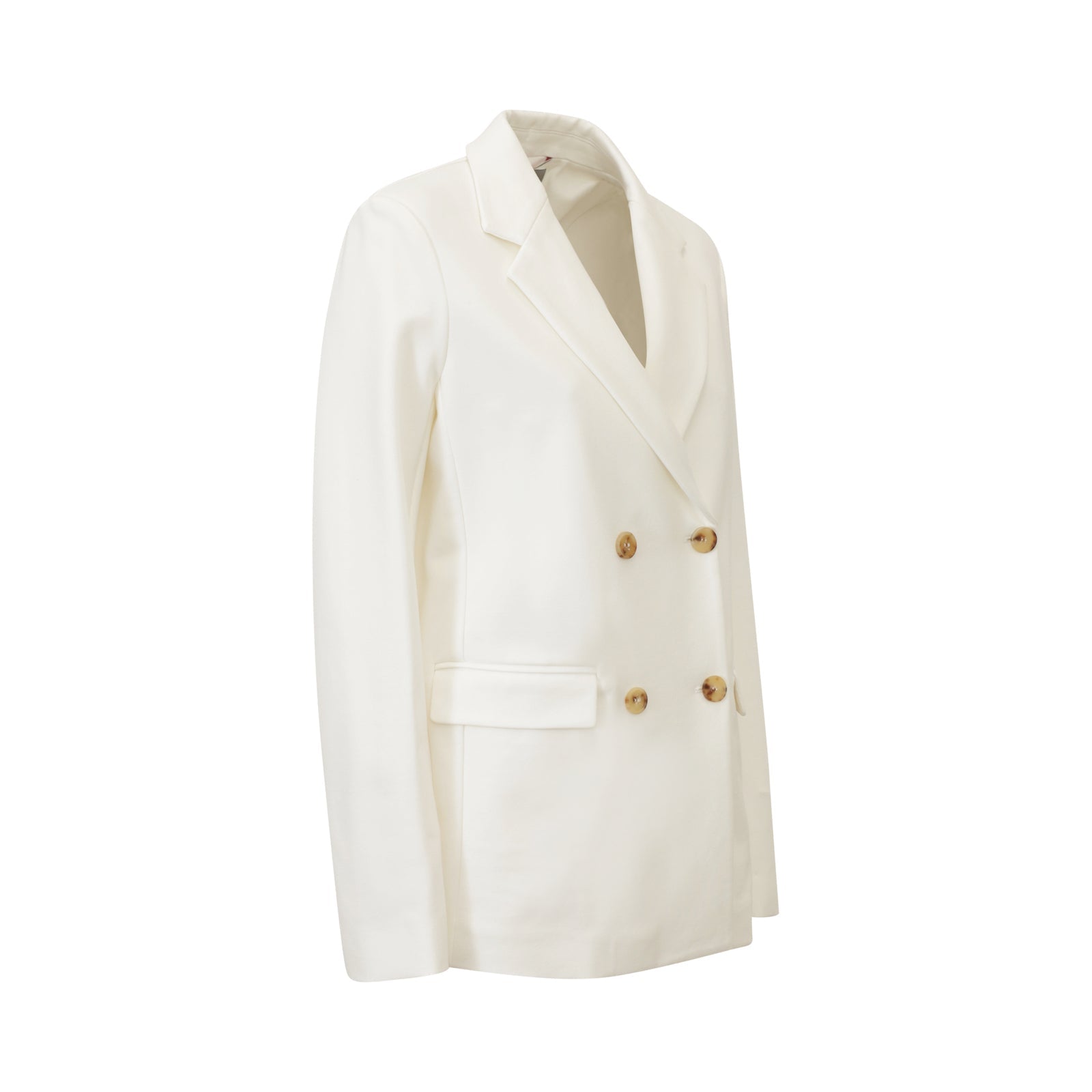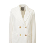 Giacca VIRGUS bianca di MM MAX MARA in viscosa con collo a rever classico, doppio petto con bottoni, tasche con patta, spacco posteriore.