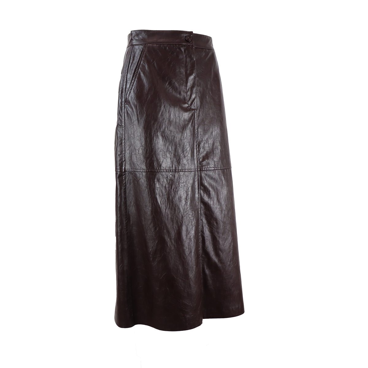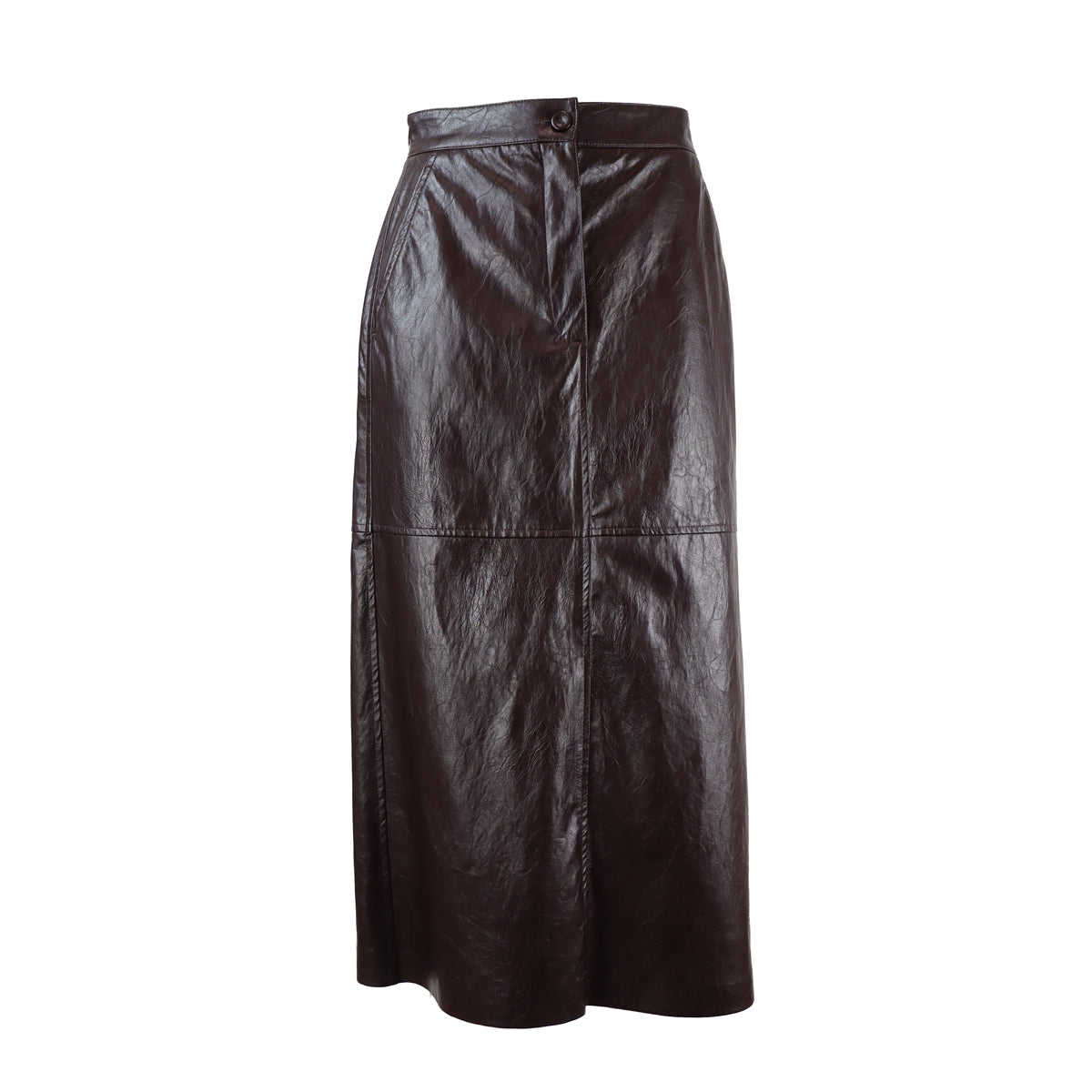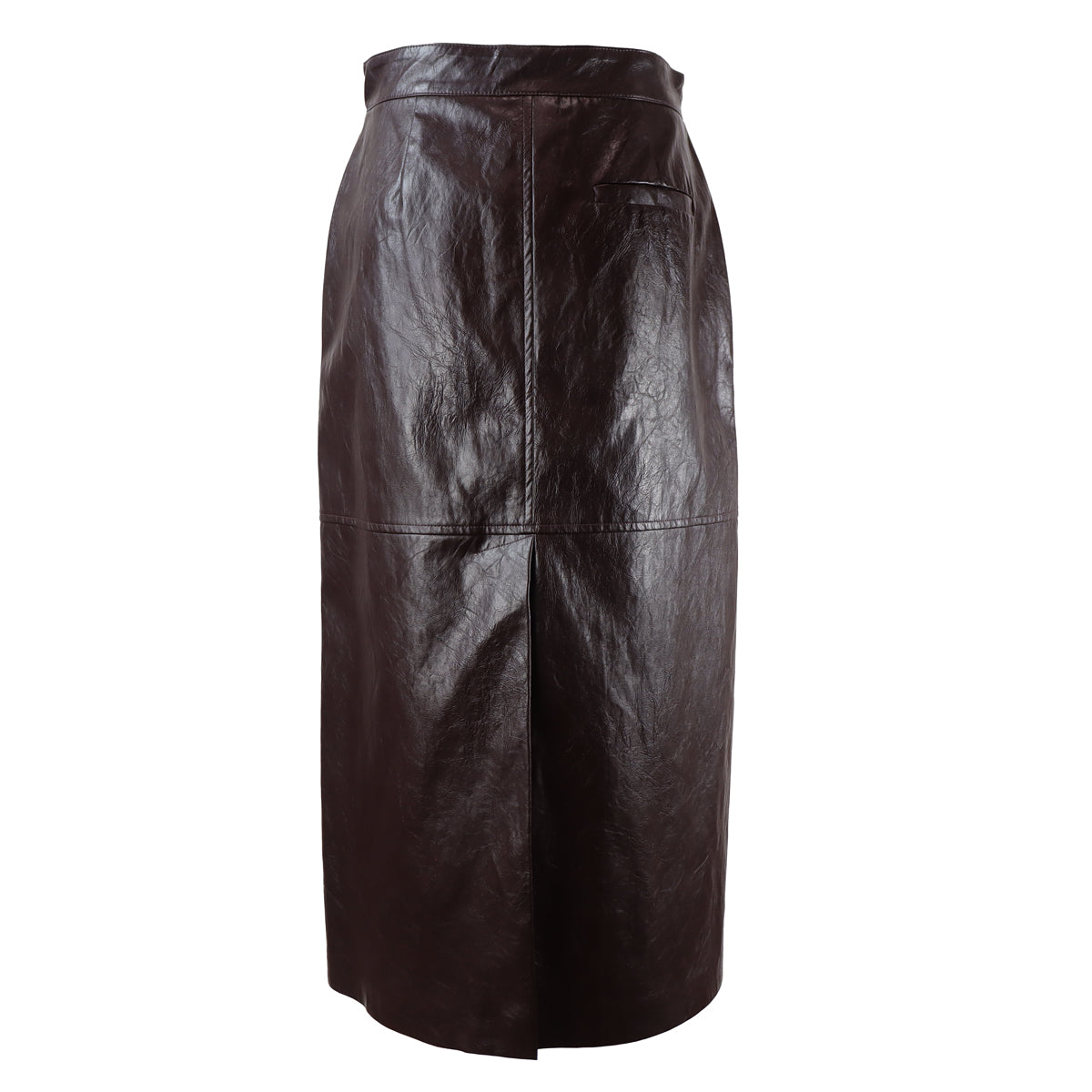 Gonna GINNICO bordeaux di IBLUES in ecopelle con chiusura con bottone e zip, tasche alla francese, tasche posteriori a filetto, spacco posteriore. Linea ad A e fit regolare.
