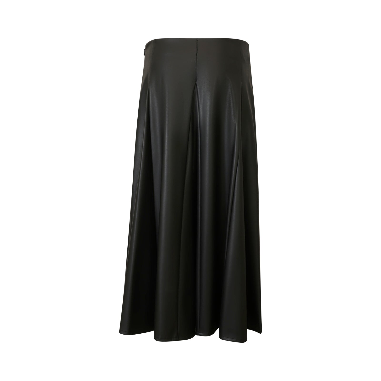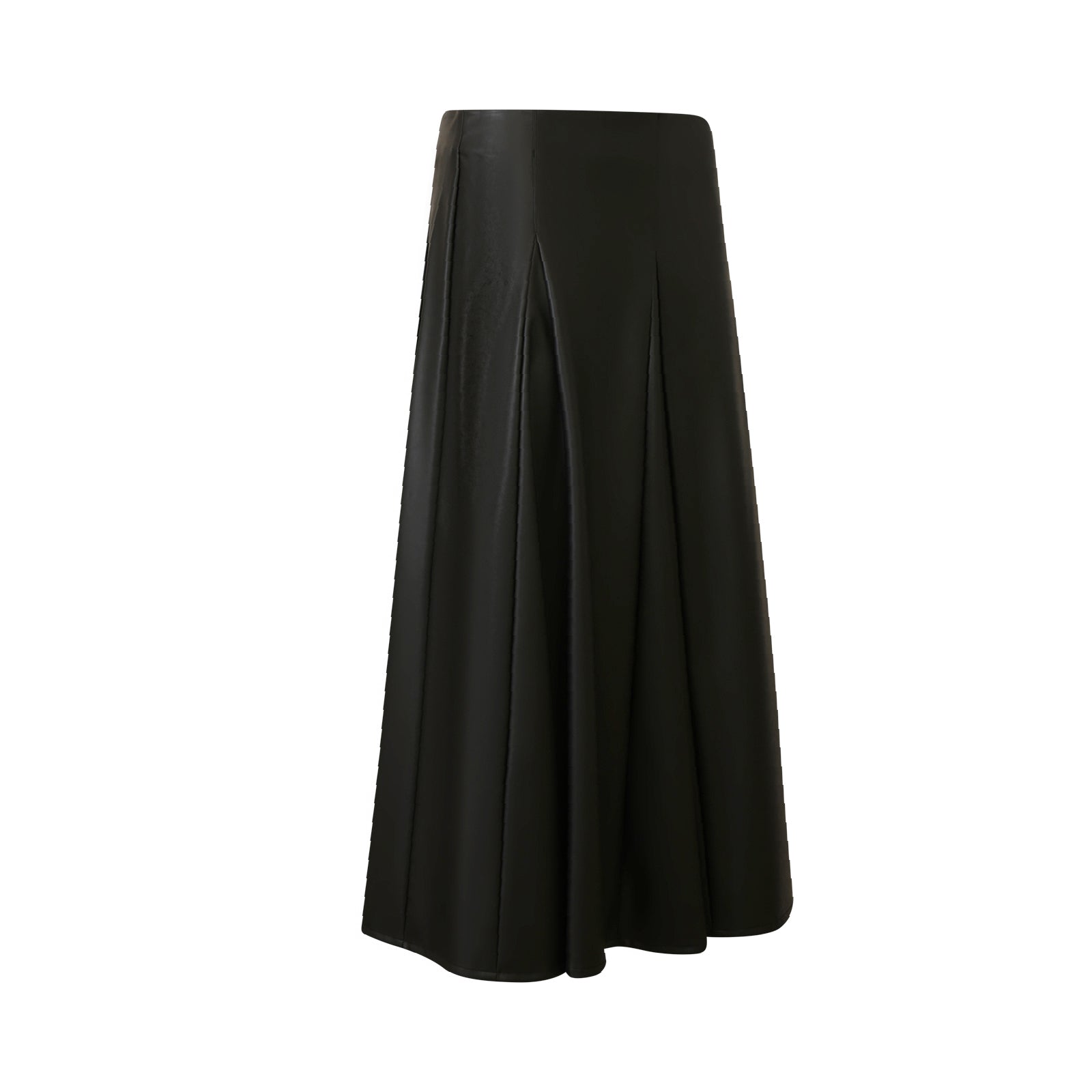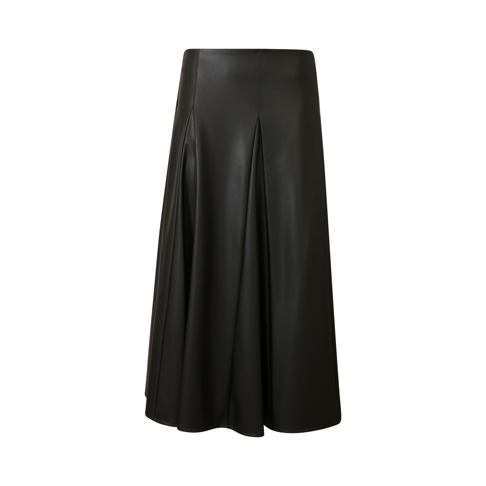 Gonna NOCERA nera di MM MAX MARA in poliestere con chiusura con zip laterale, linea svasata con pieghe. Lunghezza midi.