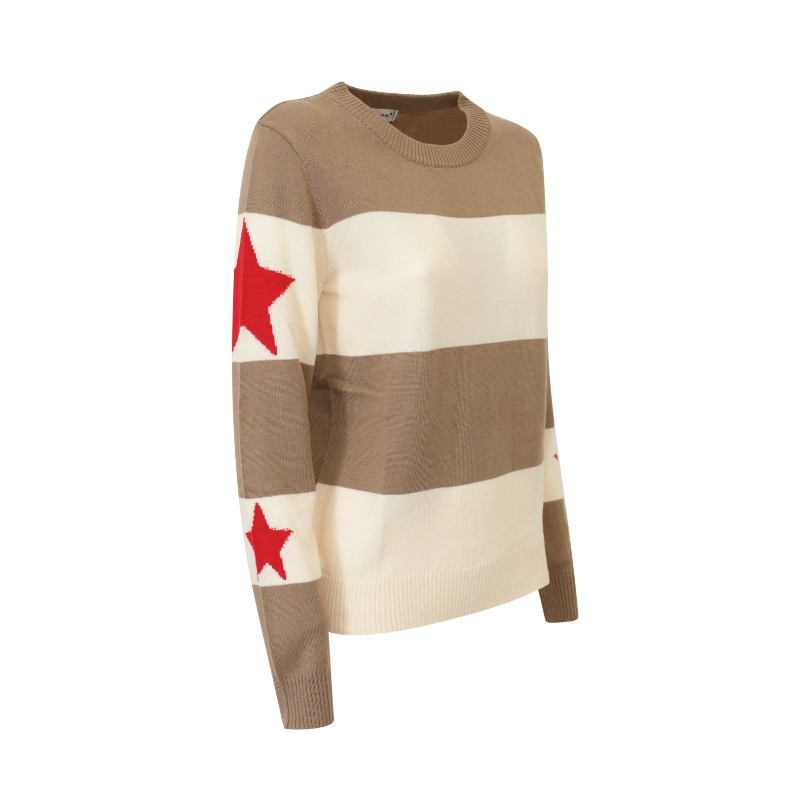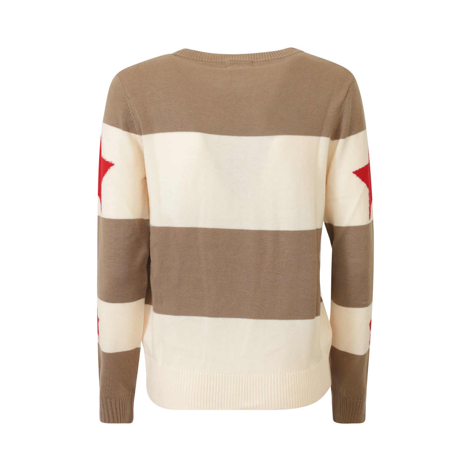 Maglia bianca e beige di T by ME in misto lana con scollo tondo, stelle a contrasto in rosso, bordi a costine.