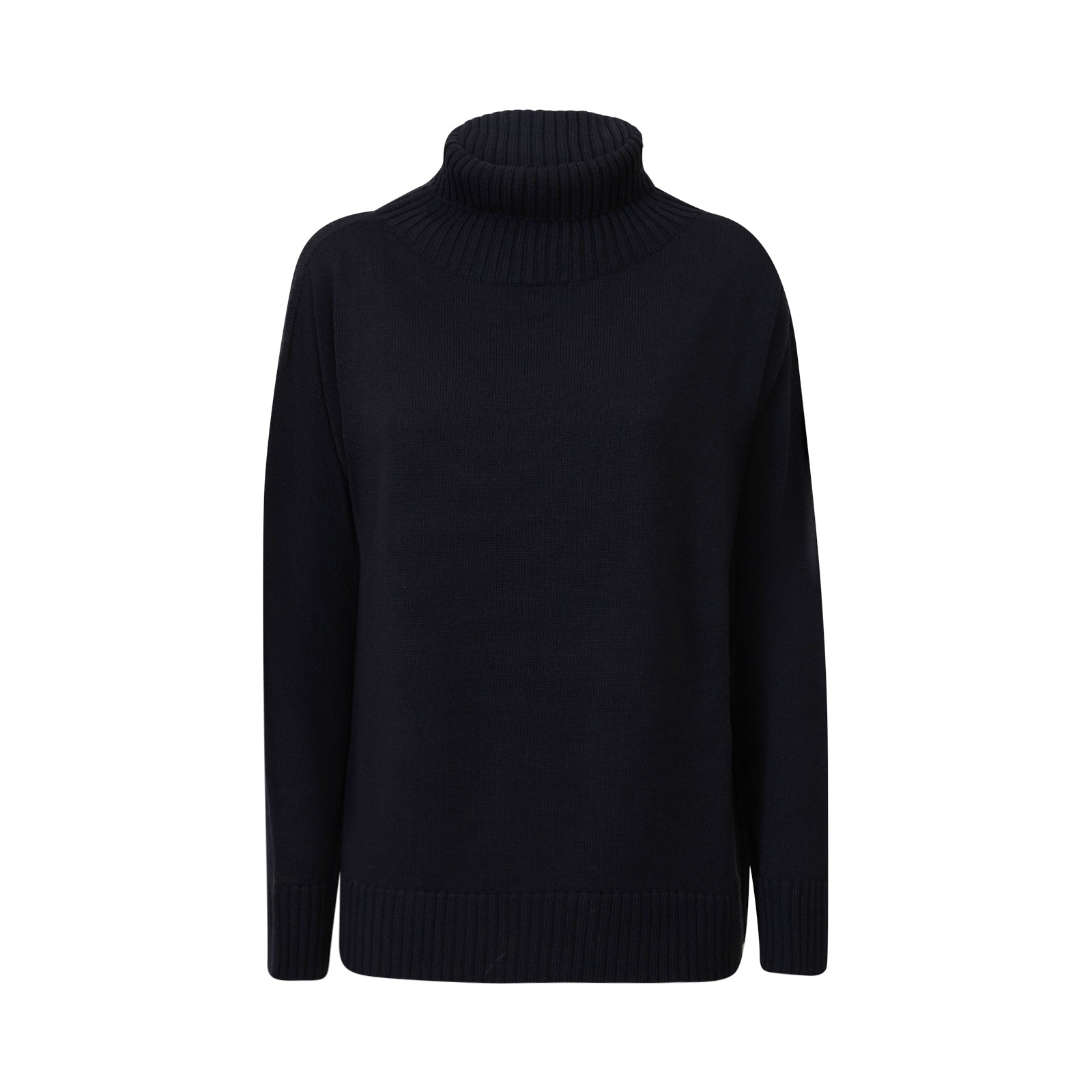 Maglia MINO blu di MM MAX MARA in lana con collo alto a coste, bordi a coste e maniche lunghe.
