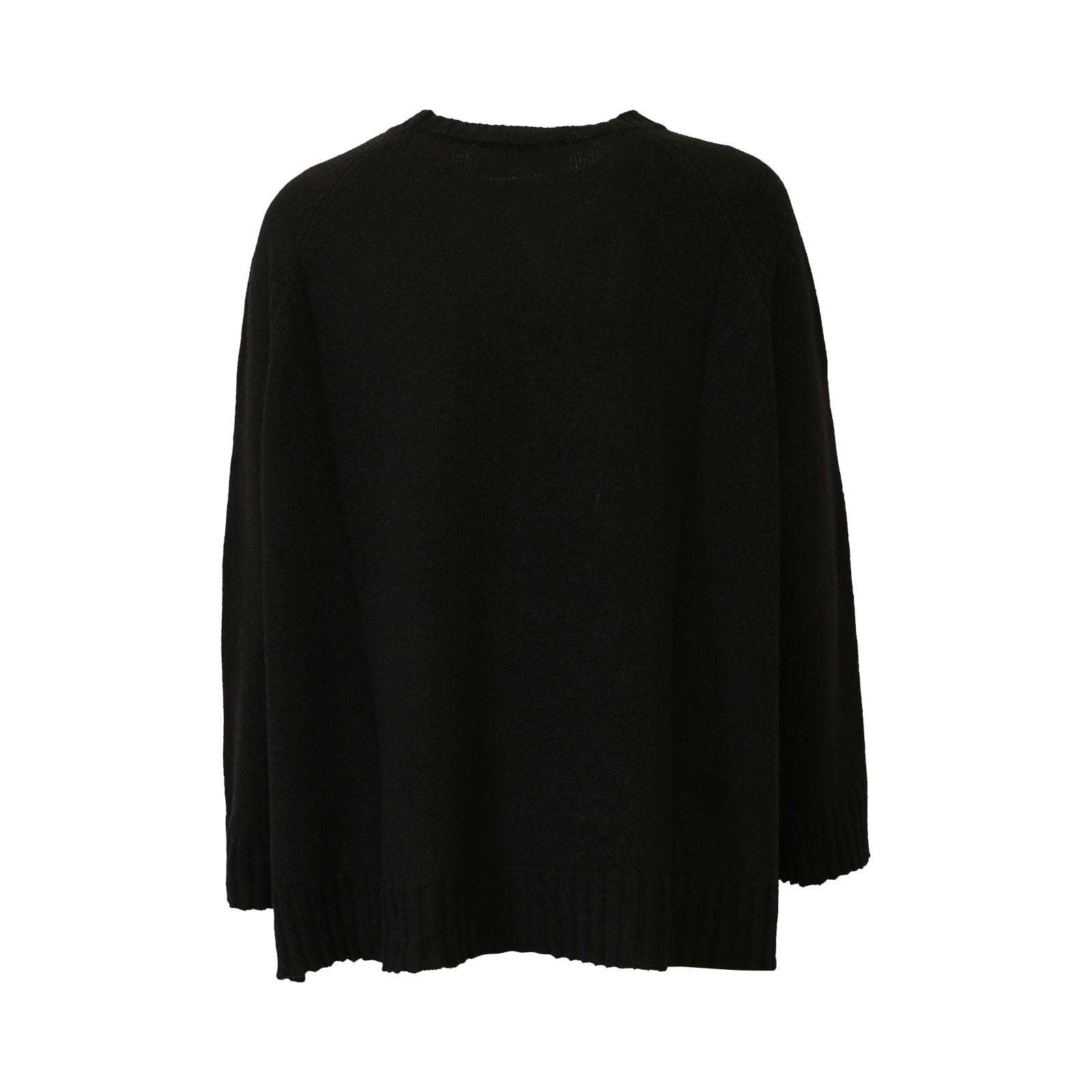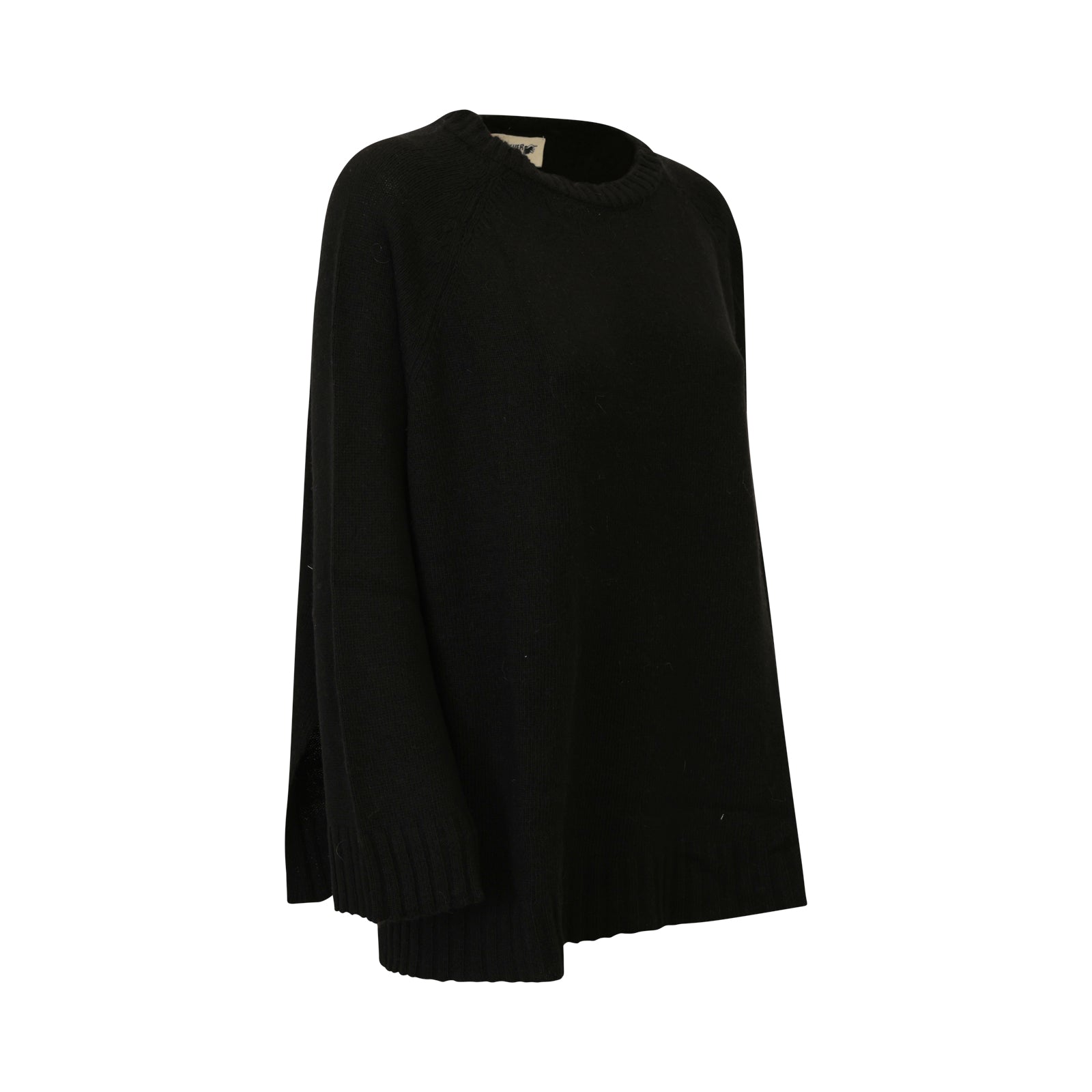 Maglia nera di ANOTHER LABEL in misto lana con scollo tondo ampio, bordi a coste, lunghezza midi svasata.