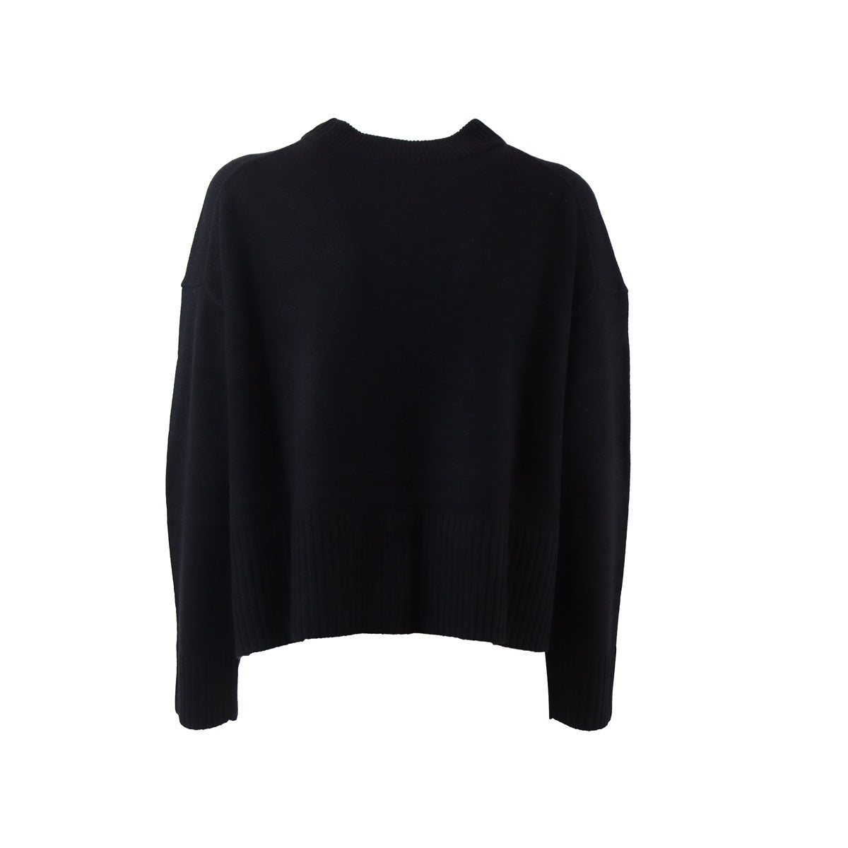 Maglia PROPOS nera di IBLUES in misto cachemire con linea over, scollo tondo, maniche lunghe e spacchi sul fondo. Fit ampio.
