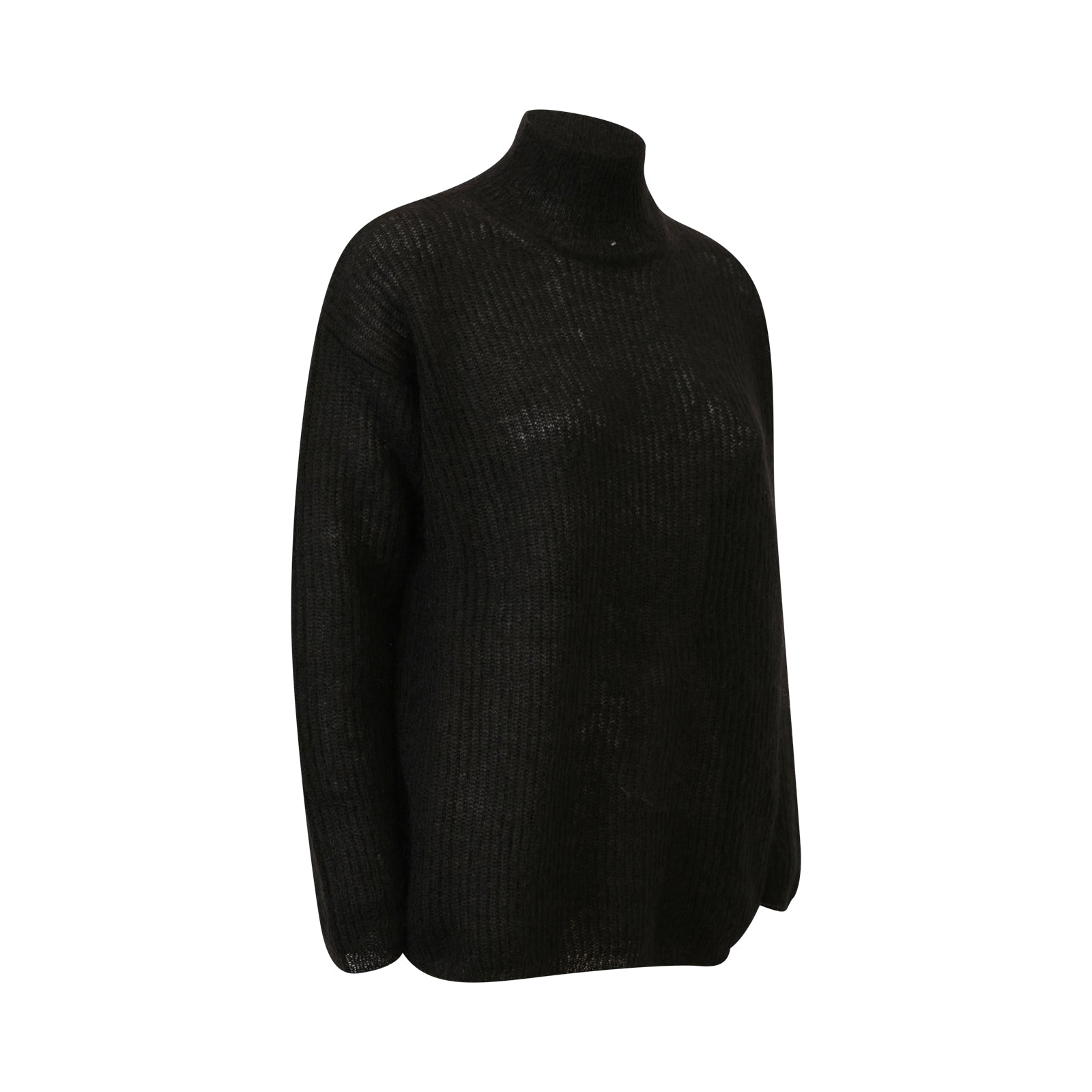 Maglia TENNA nera di MM MAX MARA in misto mohair con collo alto, lavorazione a costine.
