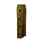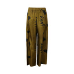 Pantalone HELGA oliva di MM MAX MARA in seta con elastico in vita, gamba ampia, tasche a filetto, stampa floreale a contrasto.