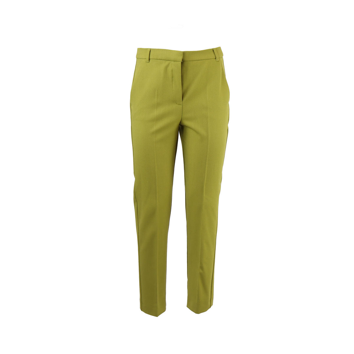 Pantalone STOLA1 verde di IBLUES in tessuto stretch con chiusura con clip e zip nascosta, tasche laterali alla francese, tasche posteriori a filetto e vita con passanti. Fit regolare.