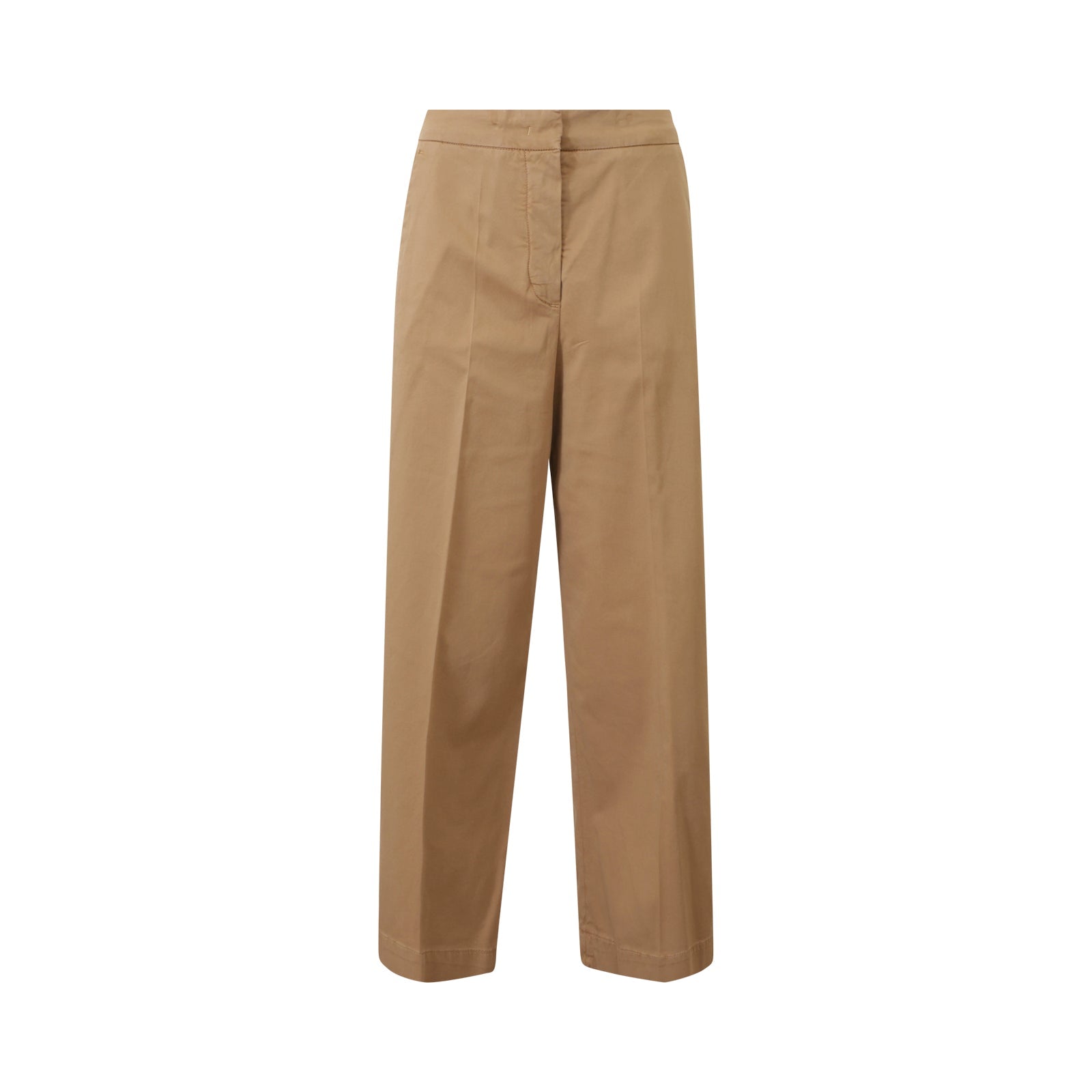 Pantalone TUNISI beige di MM MAX MARA in cotone con chiusura con zip e gancio nascosti, coulisse in vita regolabile con bottoni, tasche a filetto, tasche posteriore con patta e bottone, wide leg.