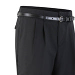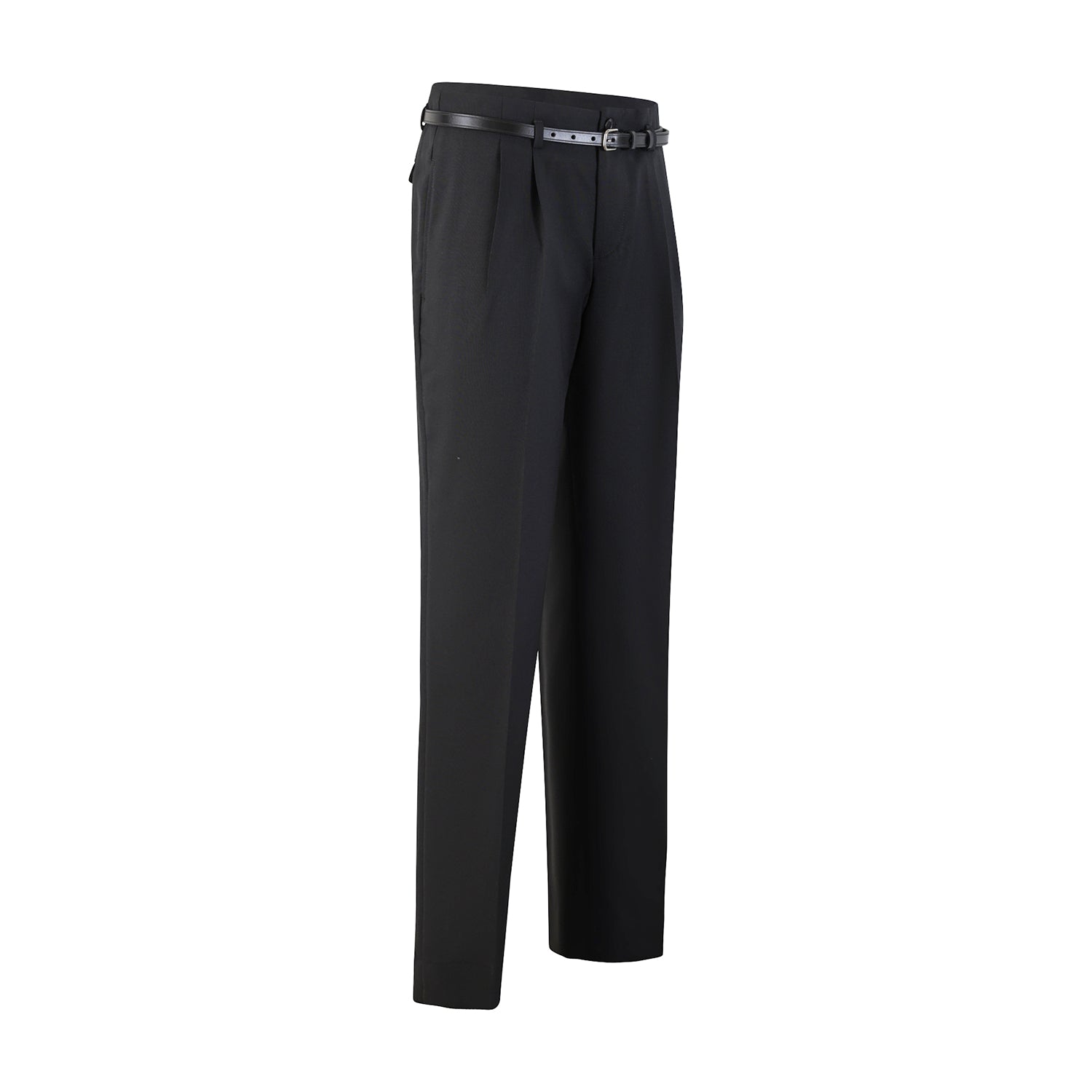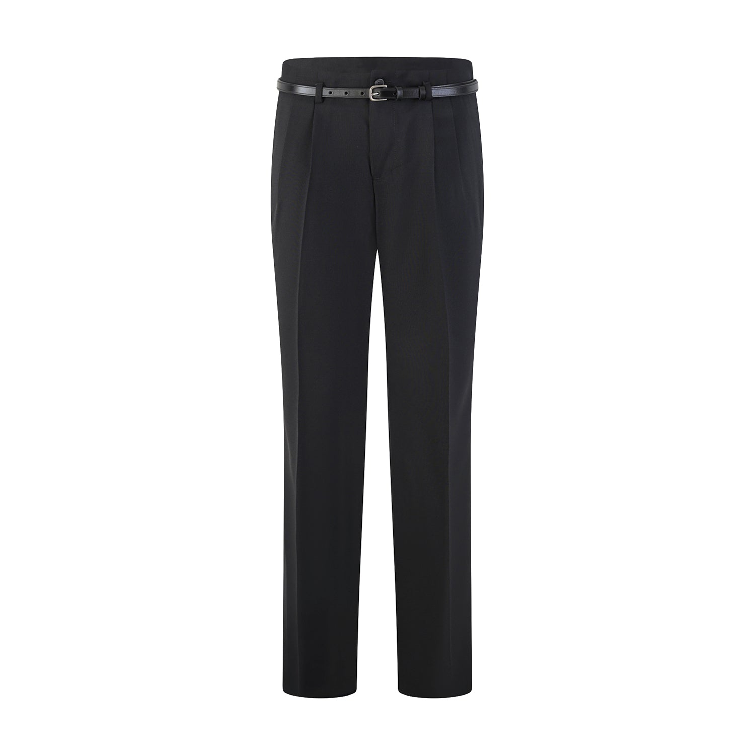 Pantalone VILLENEUVE nero di BRIGLIA GENDERLESS in lana con doppia pence, tasche a filetto, tasche posteriori con patta e cintura in vita.