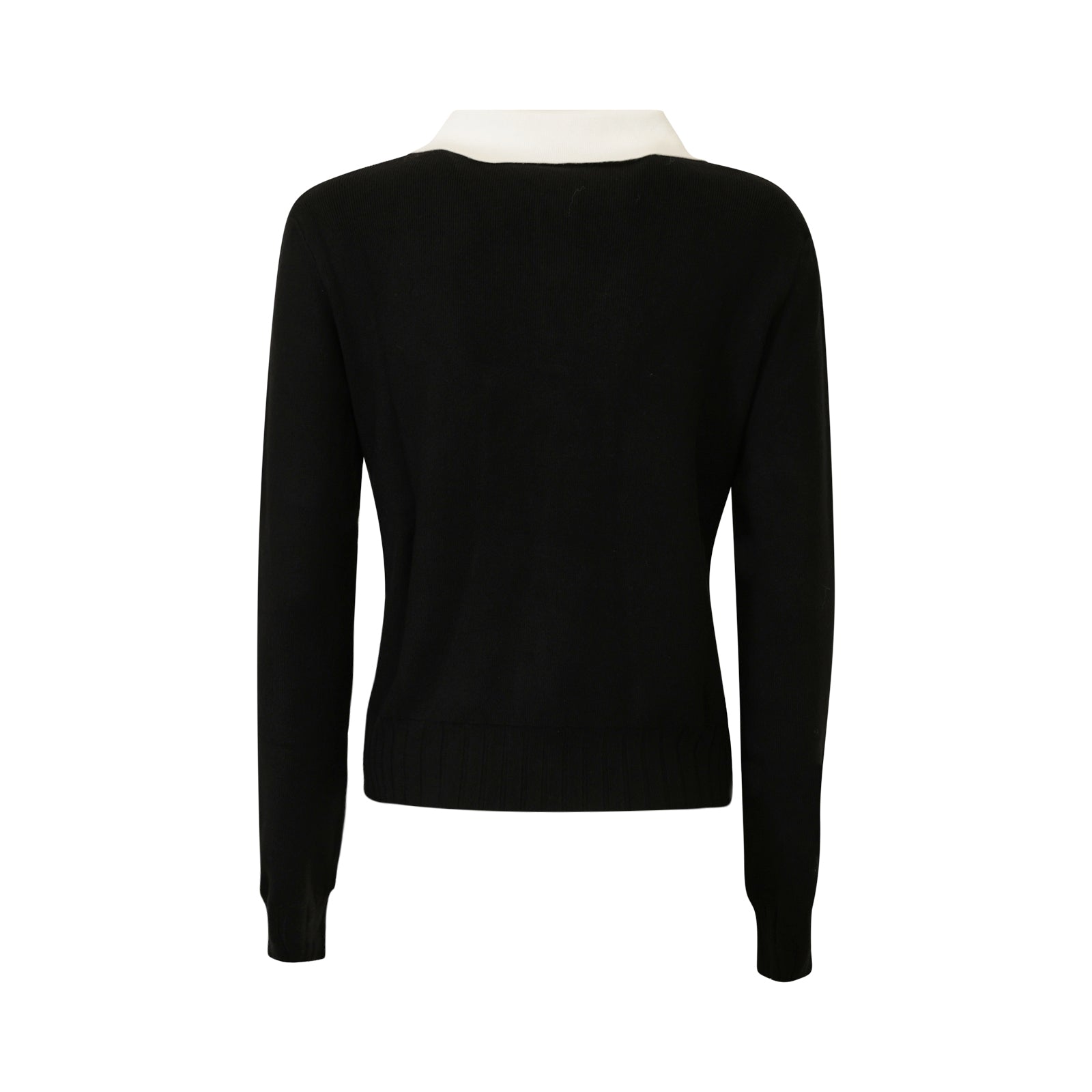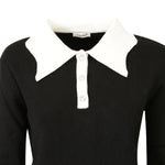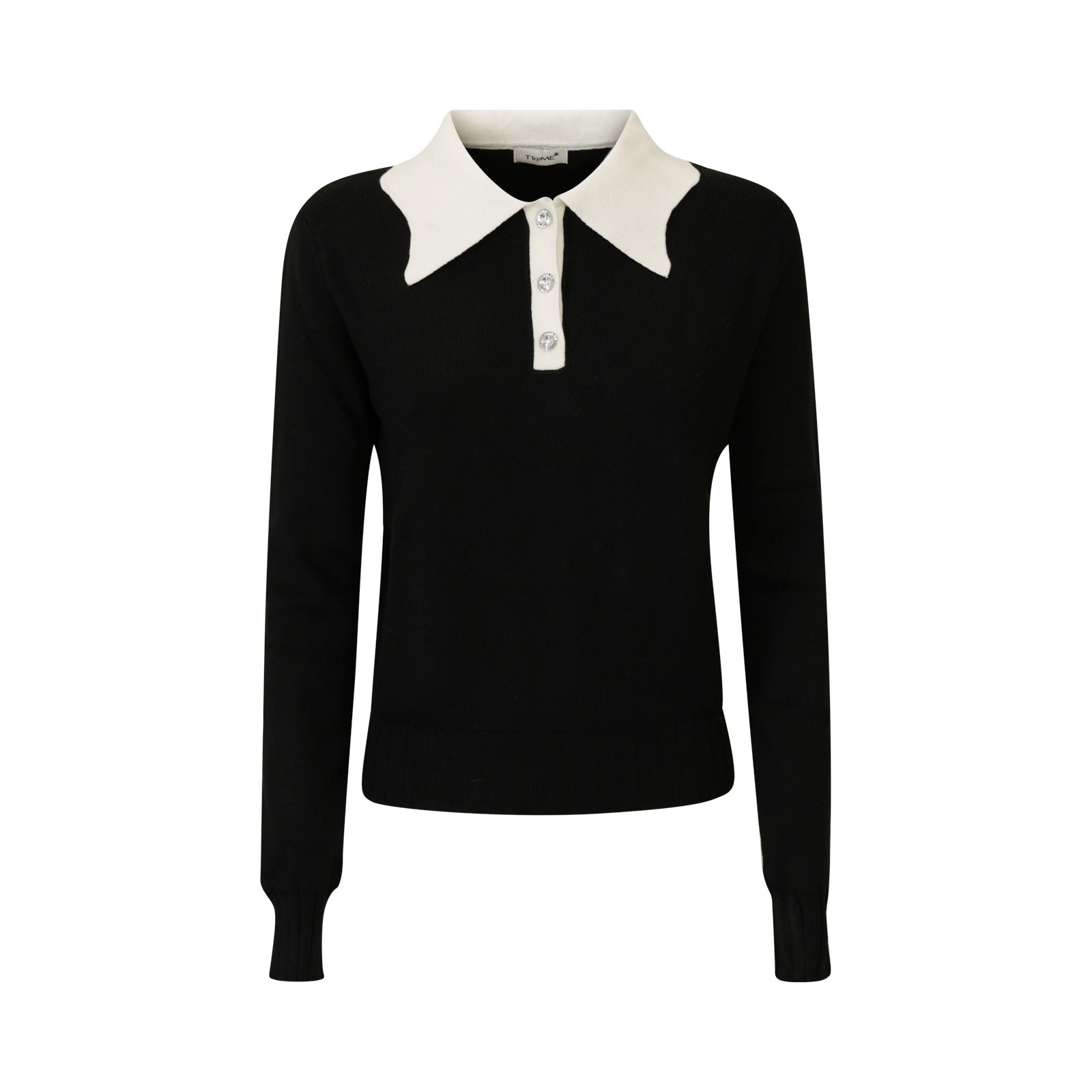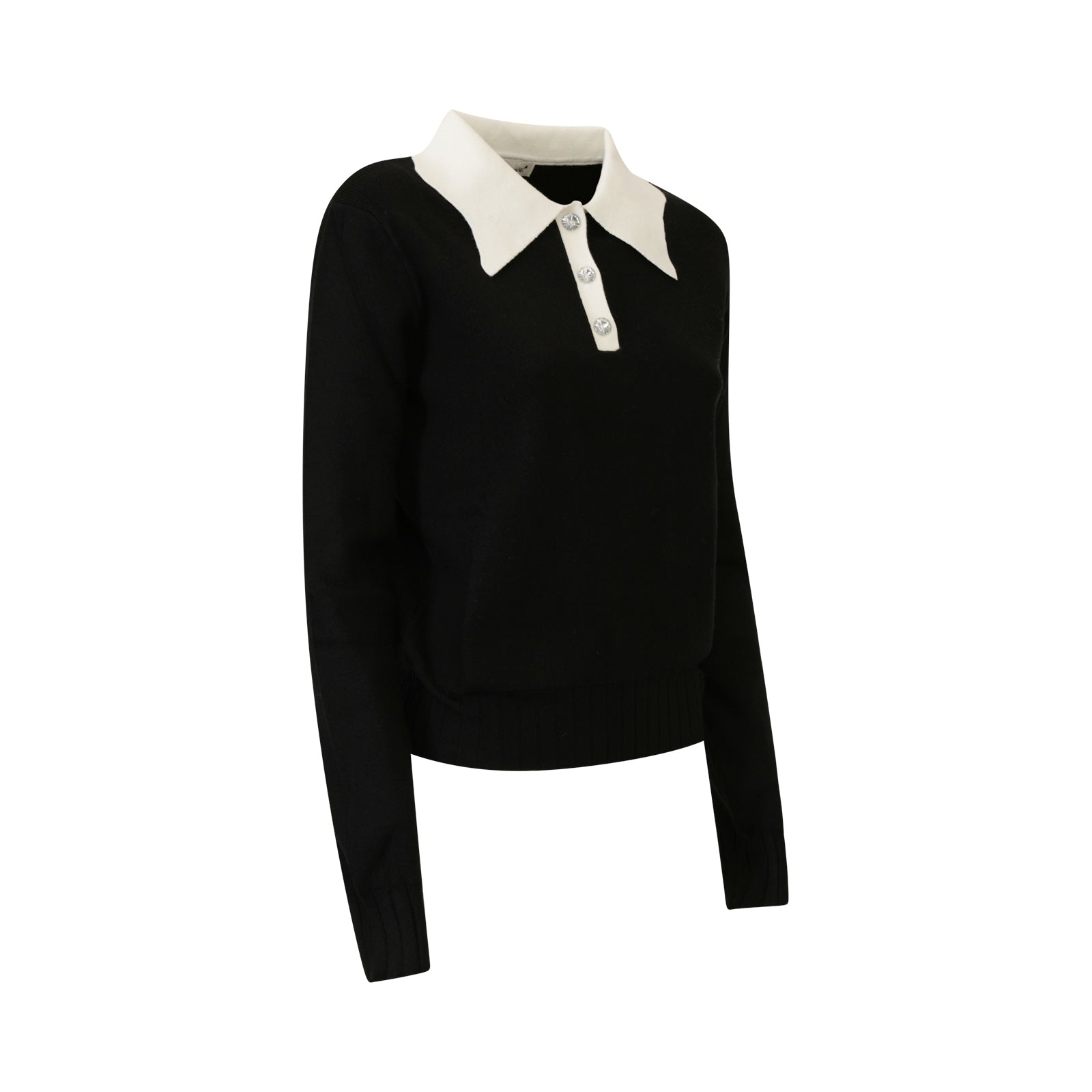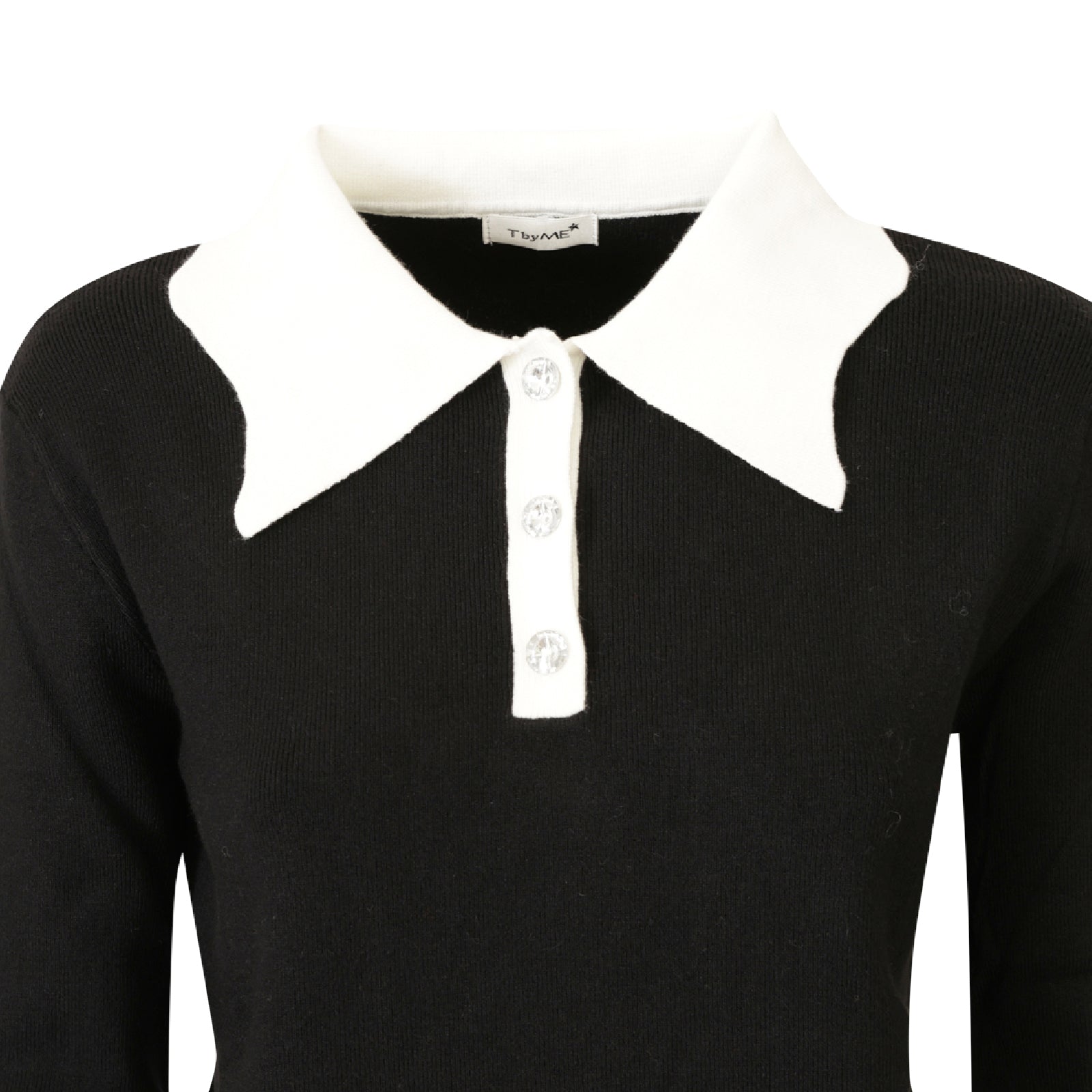 Polo nera di T by ME in misto lana con collo camicia, 3 bottoni, collo in bianco, maniche lunghe.