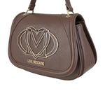 Borsa a mano marrone di LOVE MOSCHINO in ecopelle con effetto bottatalato, patta con logo, tracolla interna. Misure 28x18x10 cm.