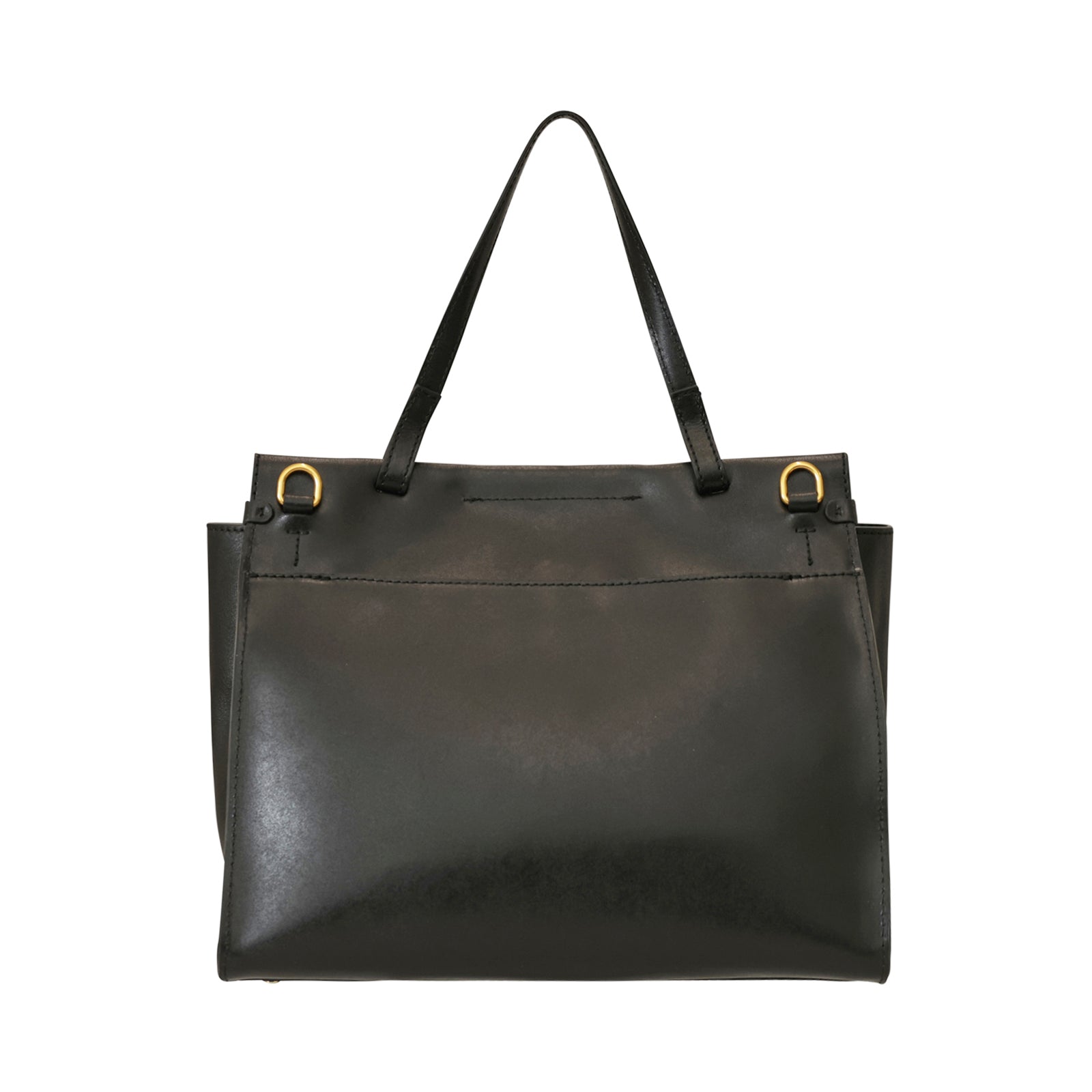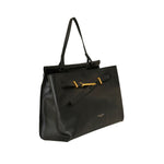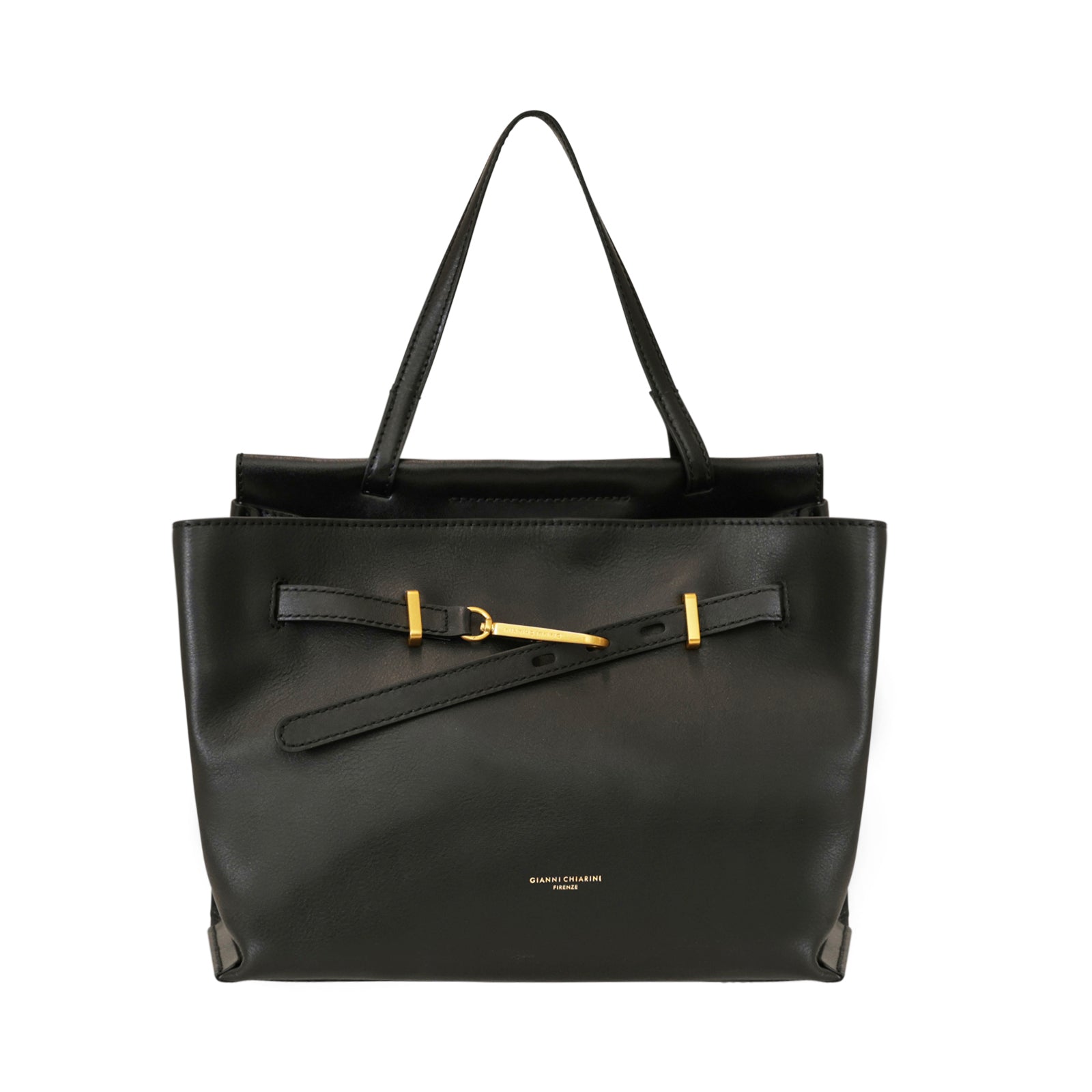 Borsa a mano media nera di GIANNI CHIARINI in pelle con manico singolo chiusura con zip, cinta attorno alla borsa regolabile con accessorio in metallo oro. Misure 34x30x14 cm.