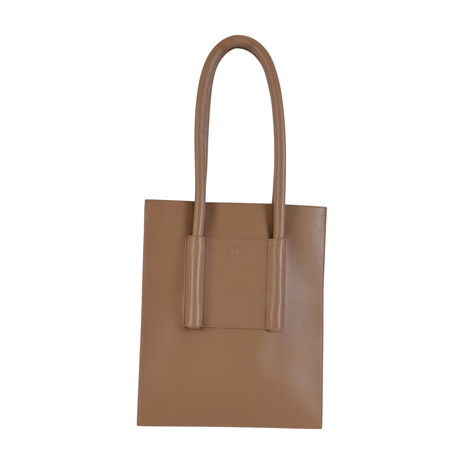Borsa a mano SHOW cammello di MM MAX MARA in ecopelle con doppio manico, chiusura con bottone.