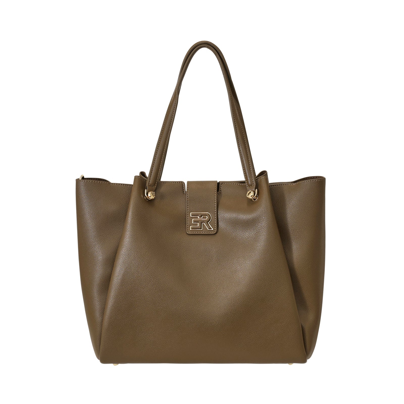 Borsa a mano VALLY verde di ERMANNO SCERVINO in ecopelle con effetto bottalato, doppio manico, chiusura con pattina, logo coi profili in metallo oro e chiusura con zip. Misure 42x30x13 cm.