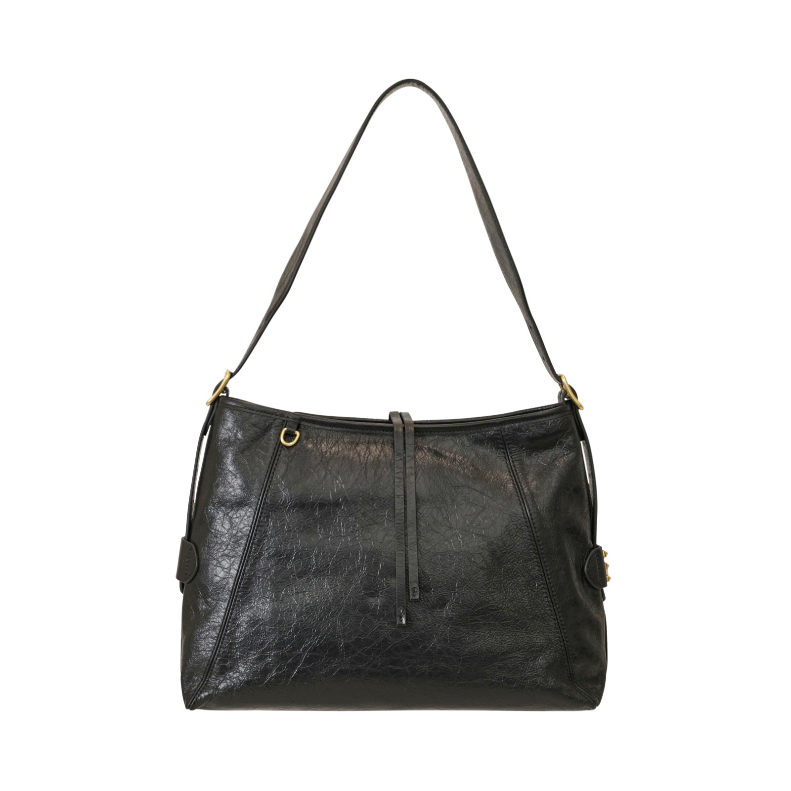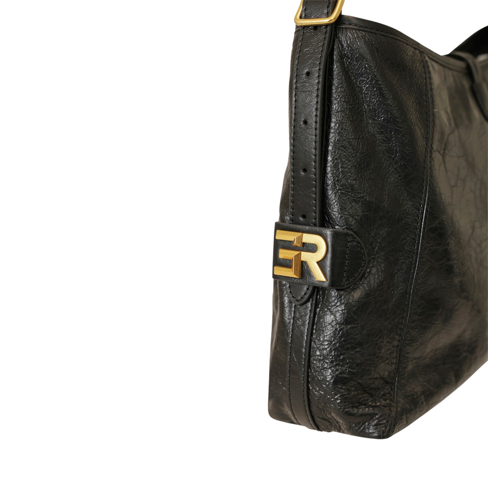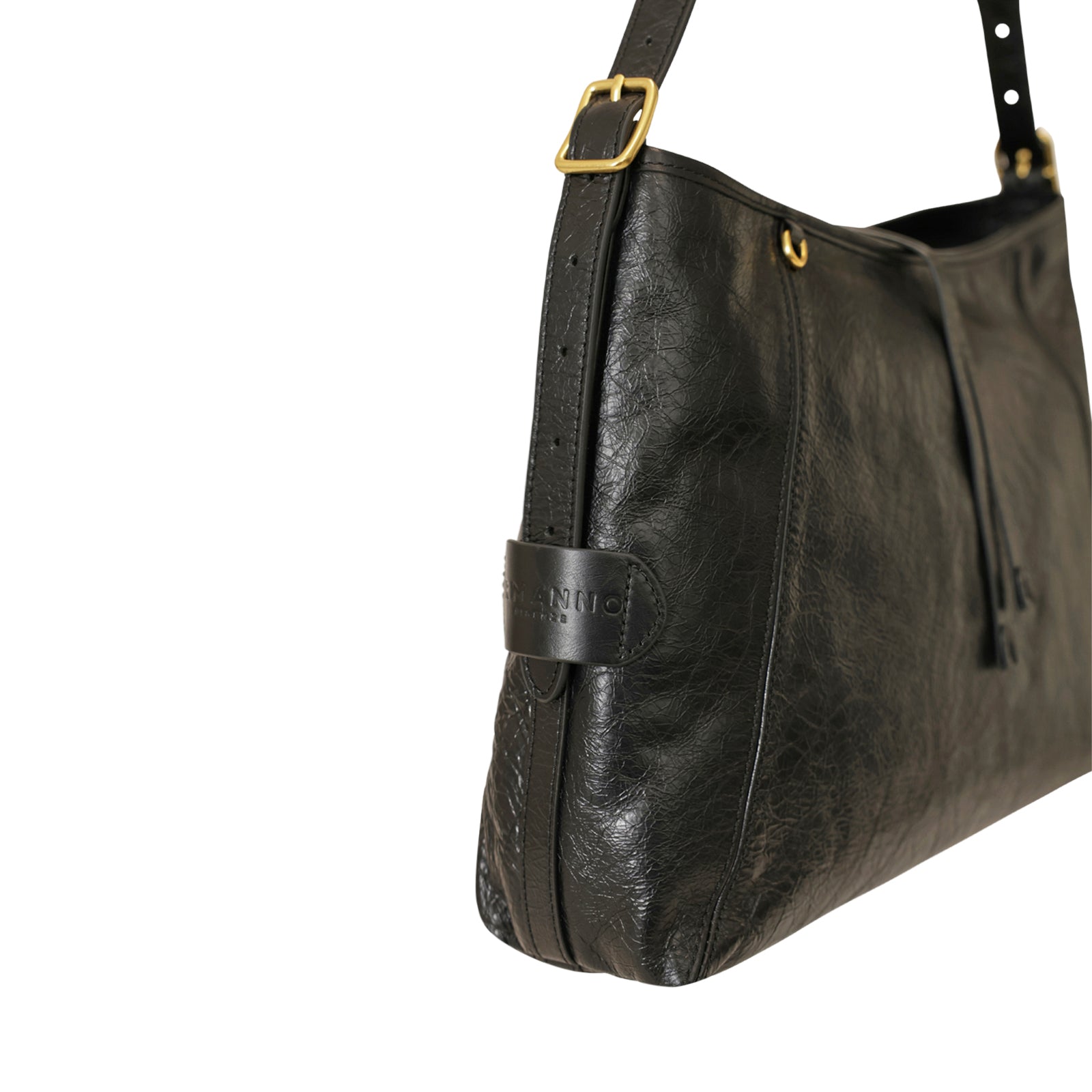 Borsa a spalla ADELE nera di ERMANNO SCERVINO in pelle con effetto crackele, manico singolo, accessori in metallo oro, chiusura con zip. Misure 35x26x11 cm.