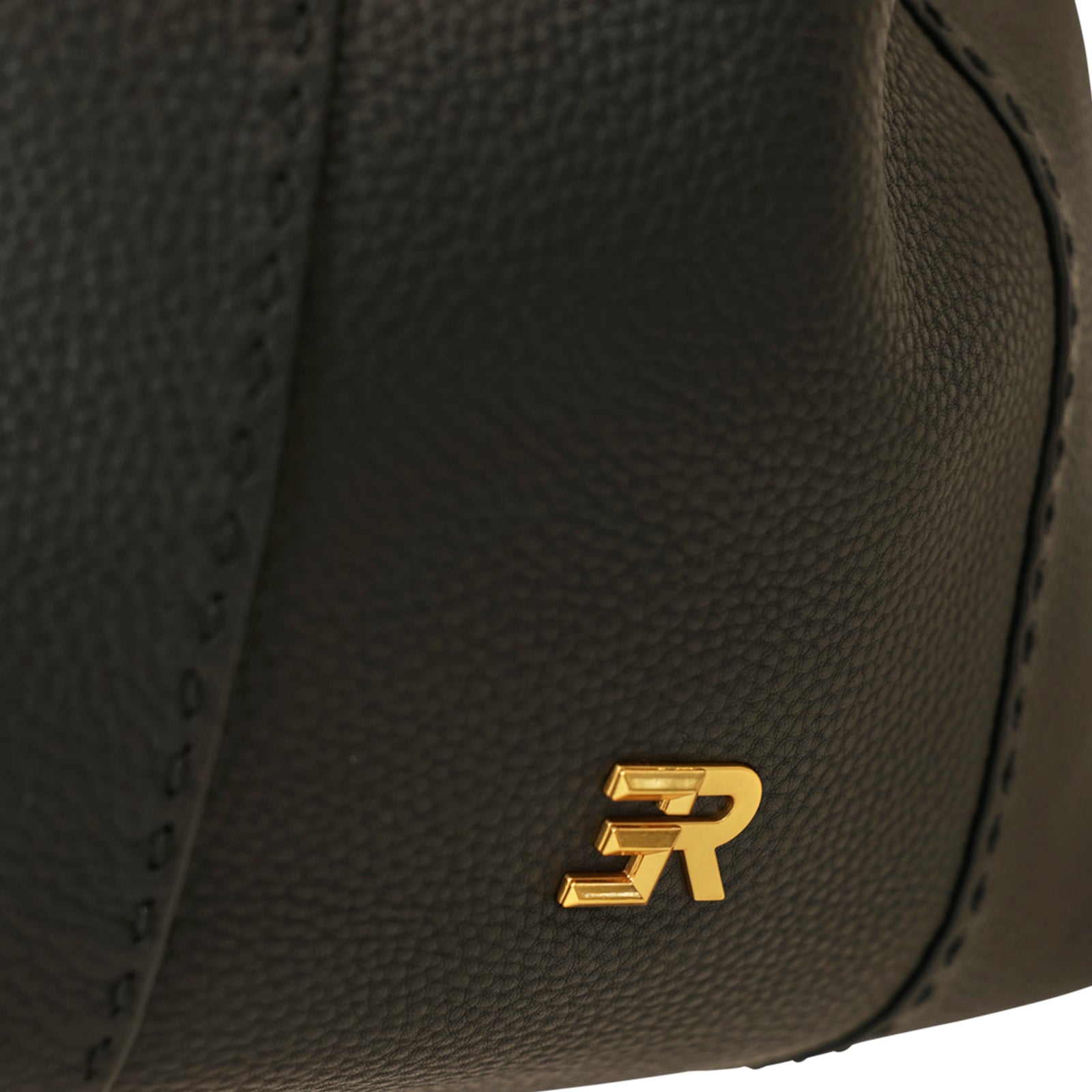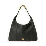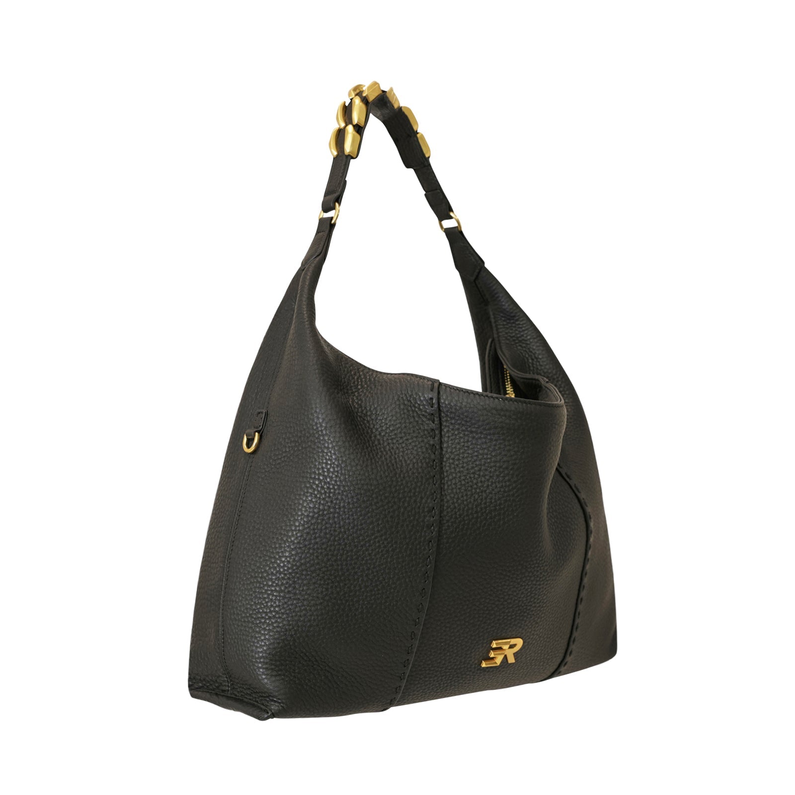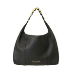 Borsa a spalla ARABELLA nera di ERMANNO SCERVINO in pelle con effetto bottalato, manico singolo, accessori in metallo oro, chiusura con zip. Misure 40x23x12 cm.