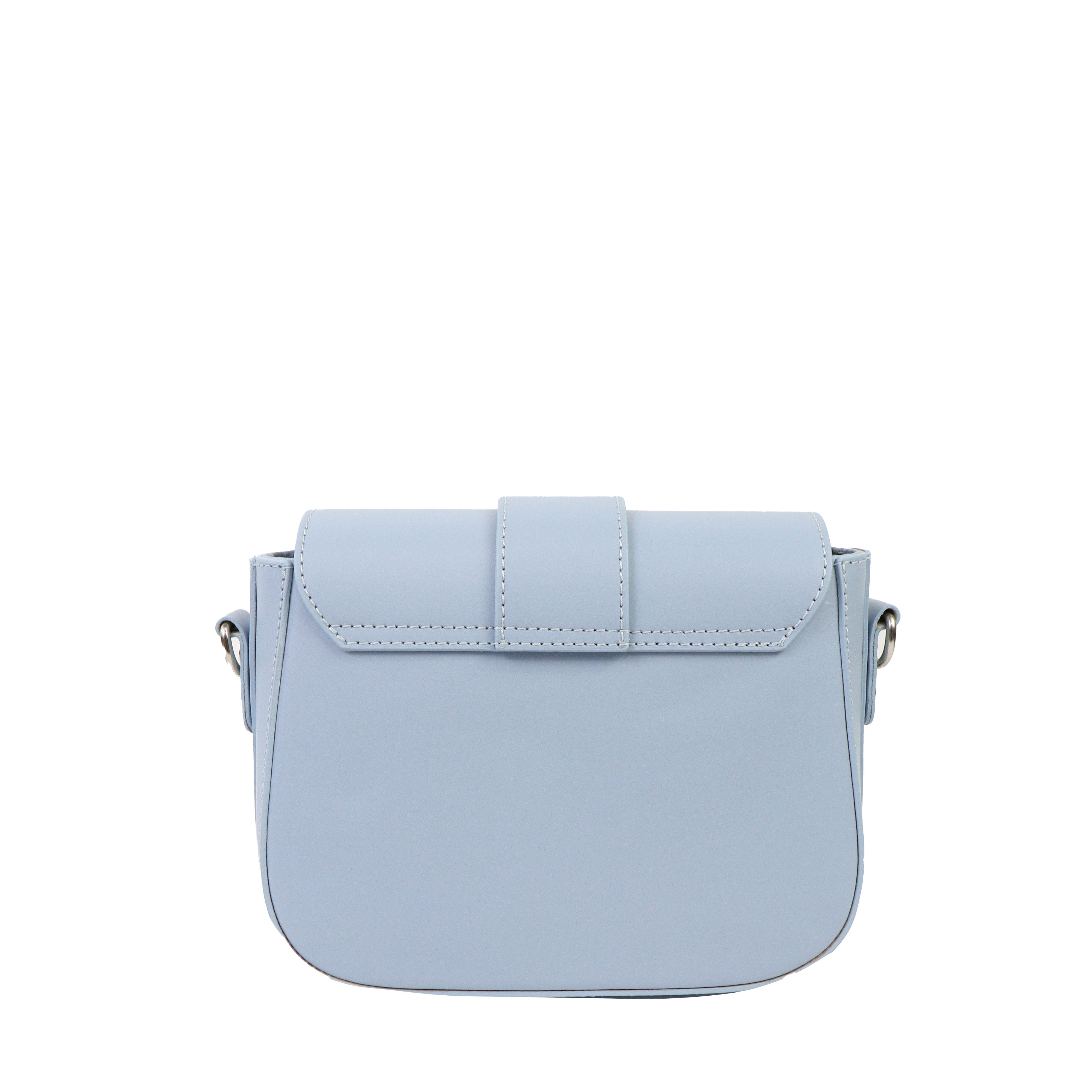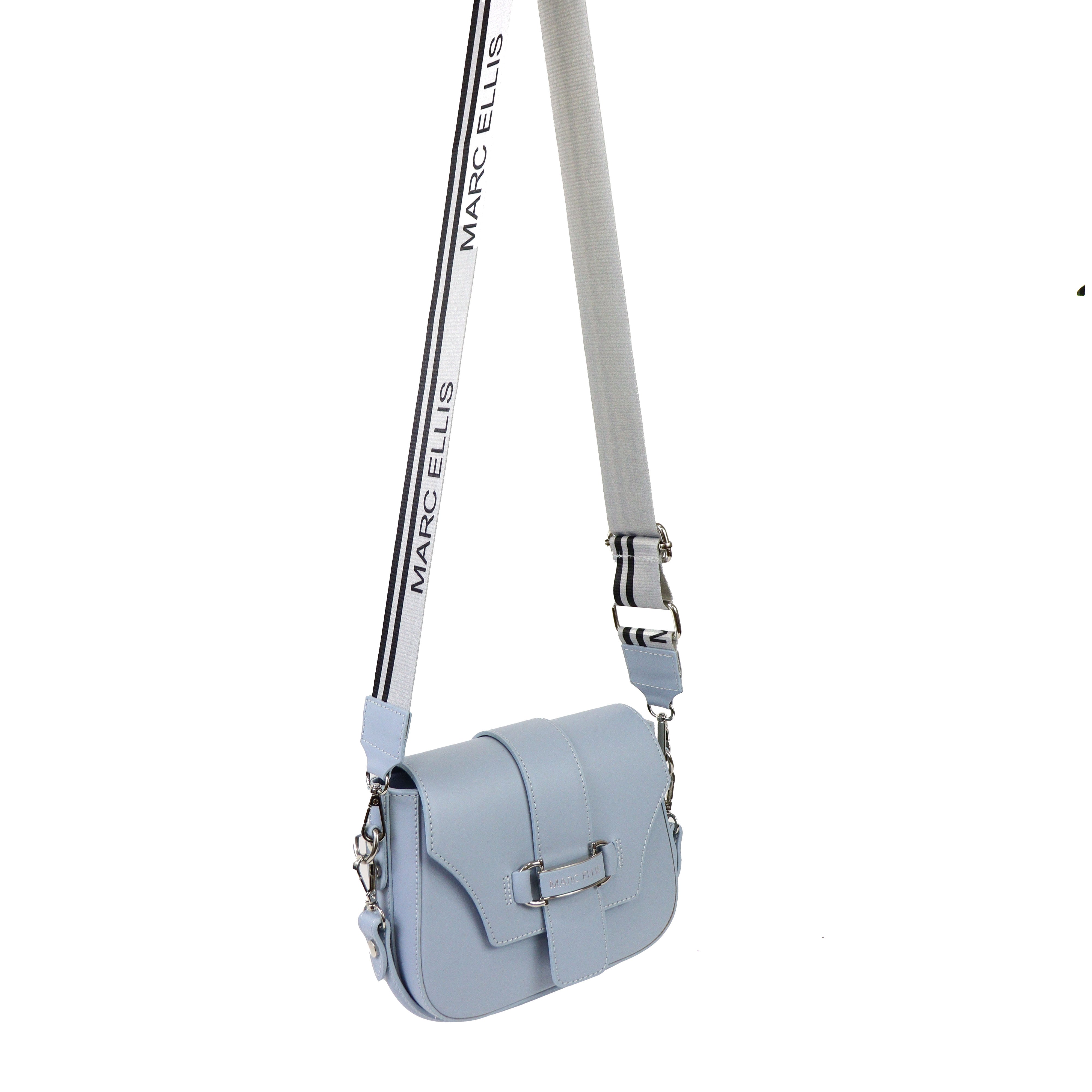 Borsa a tracolla XENIA celeste di MARC ELLIS in pelle con chiusura con patta e doppia tracolla interna. Misure 22x15x7 cm