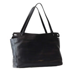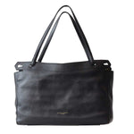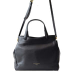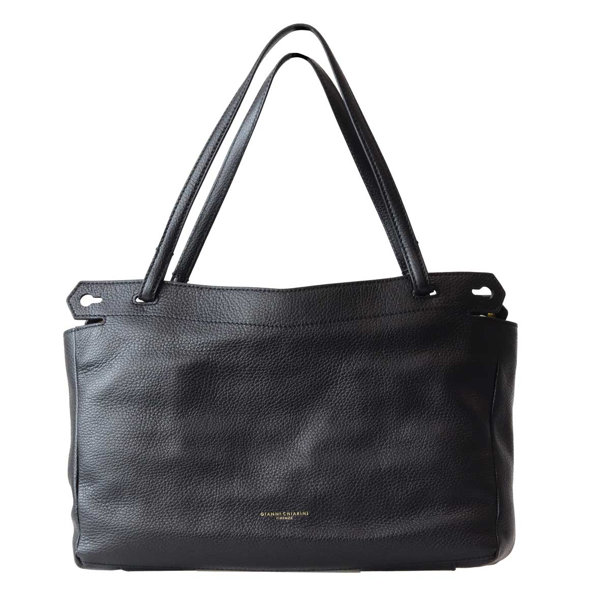 Borsa nera di GIANNI CHARINI in pelle con effetto martellato, chiusura con zip, doppio manico, logo a fuoco in color oro, bottoni laterali in metallo oro e tracolla interna in pelle nera. Misure 37x23x10 cm.