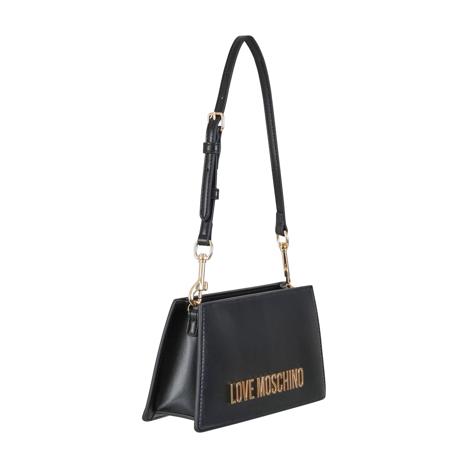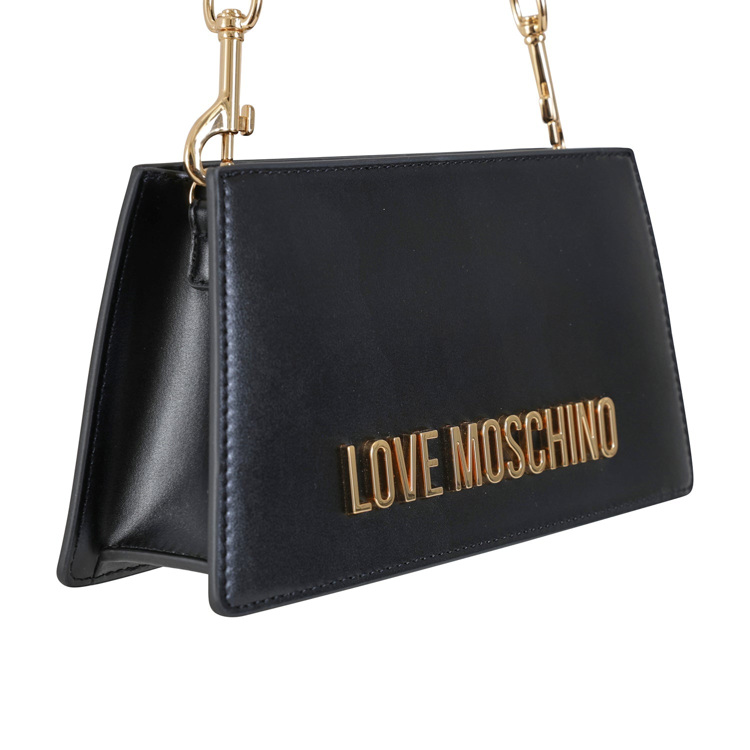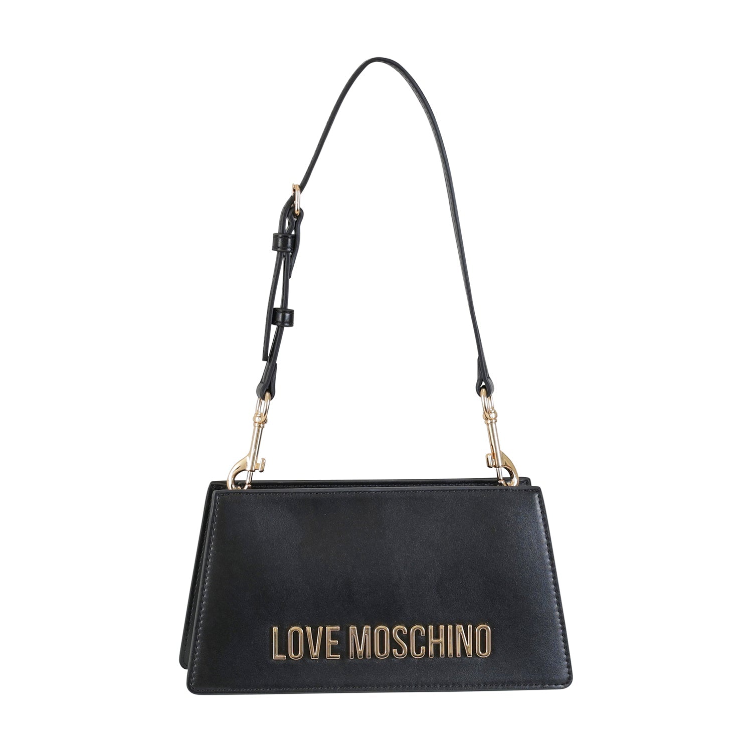 Borsetta nero di LOVE MOSCHINO in ecopelle con forma squadrata, logo lettering e manico in ecopelle. Misure 23x12x7 cm.