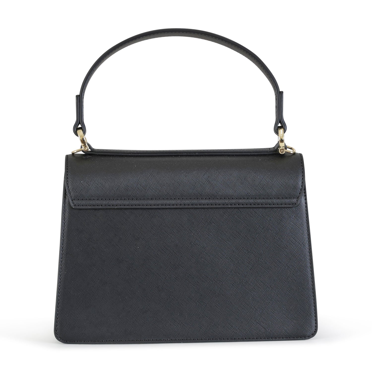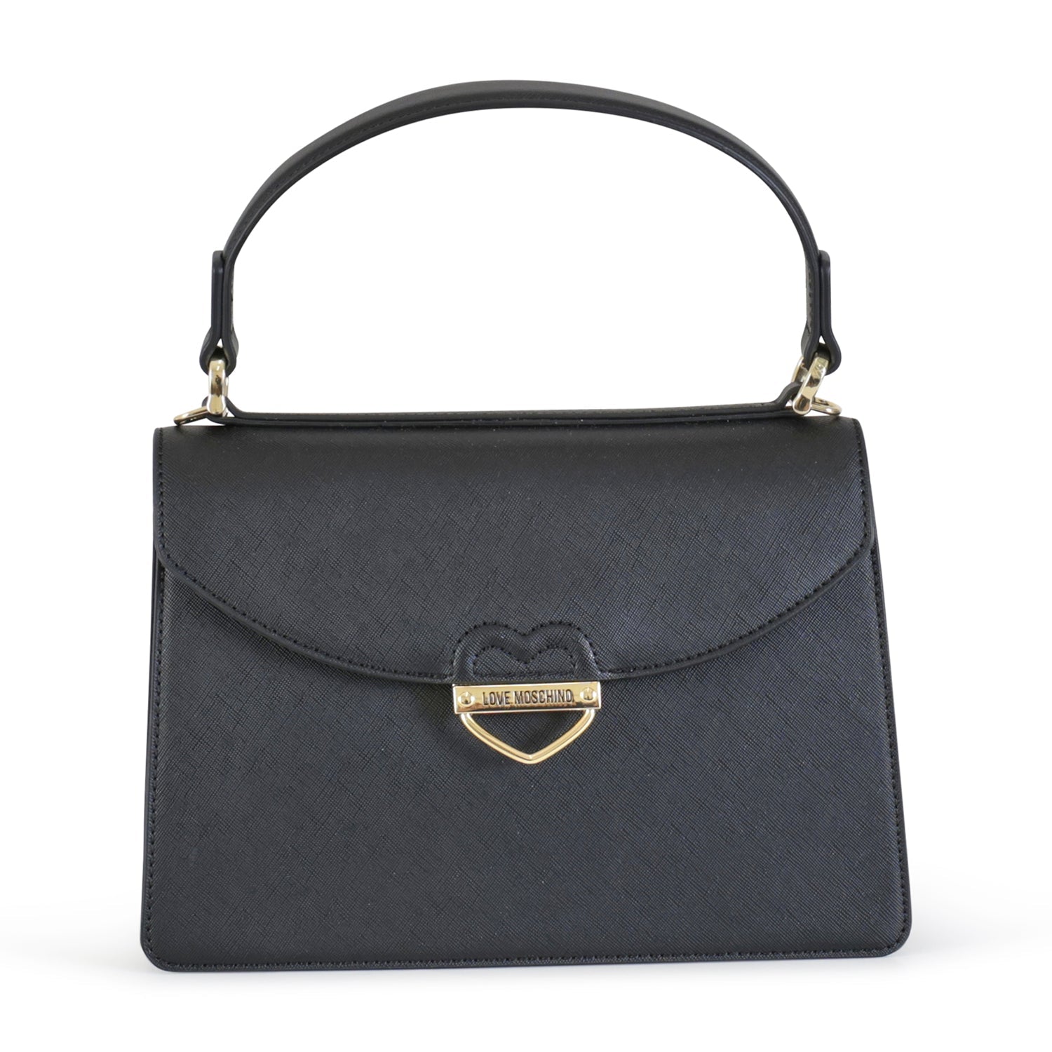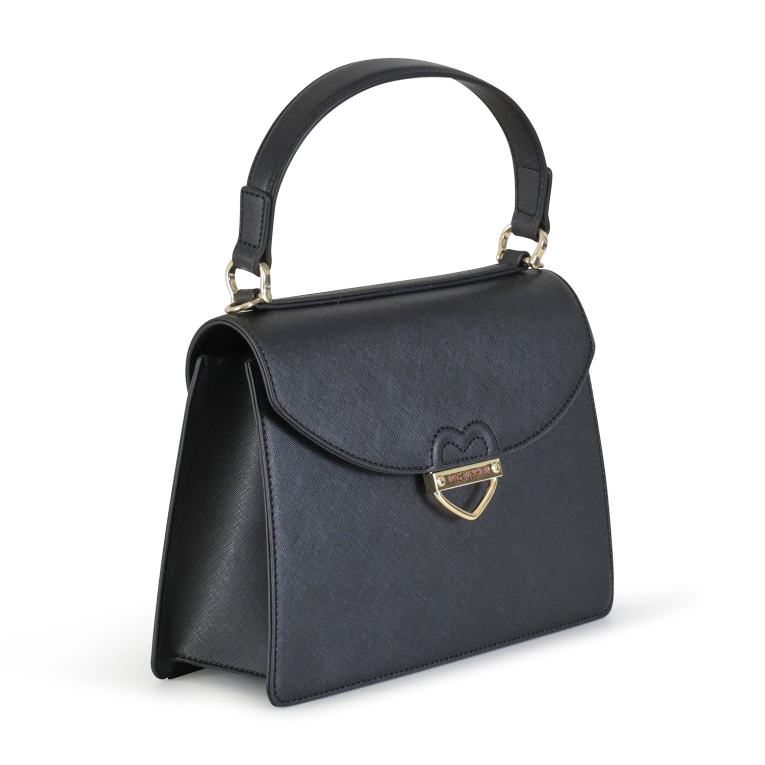 Borsetta nero di LOVE MOSCHINO in ecopelle con effetto saffiano, chiusura con patta e tracolla interna. Misure 27x17x8 cm.
