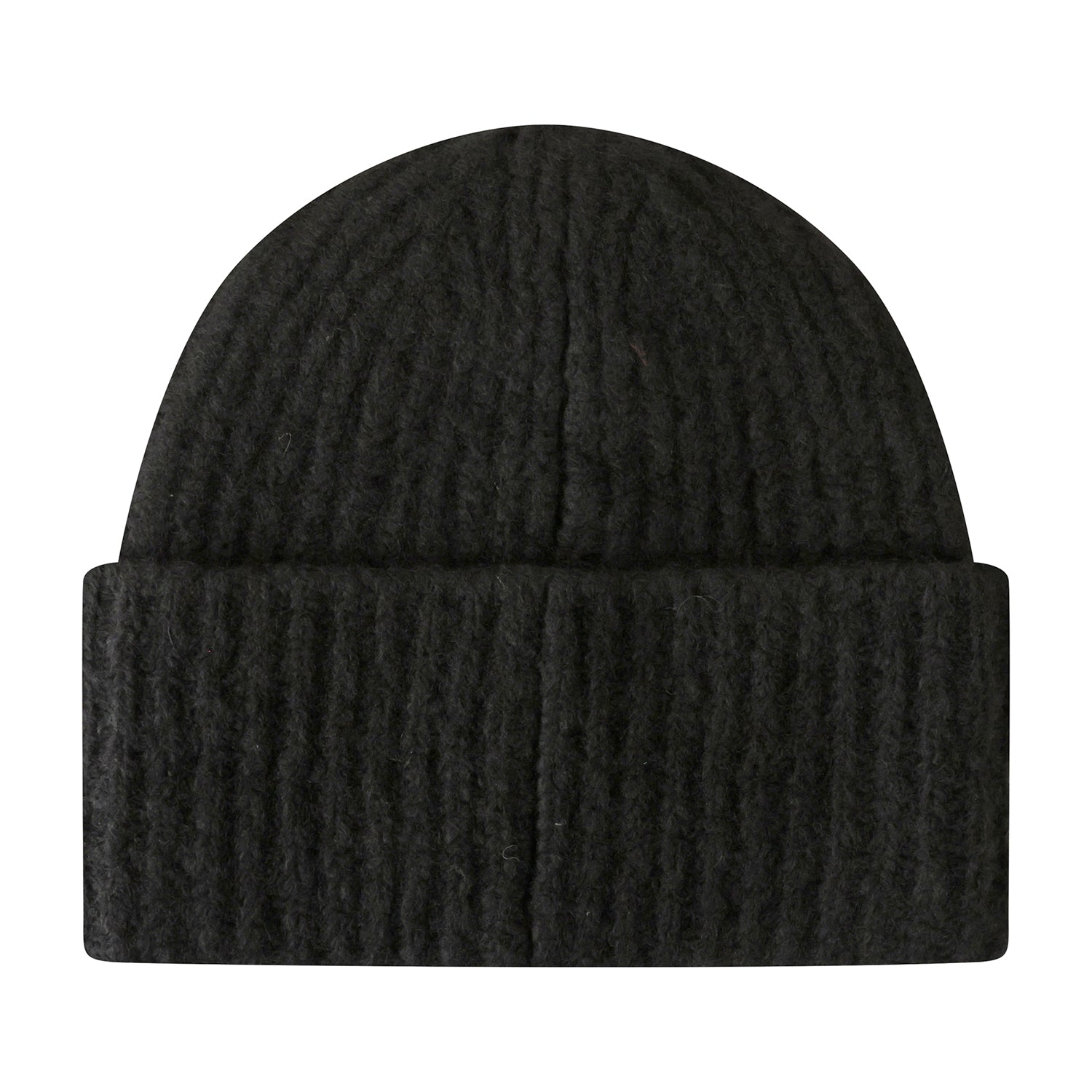 Cappello WARREN nero di M.M. MAX MARA in lana con effetto a coste, logo a fuoco su pelle