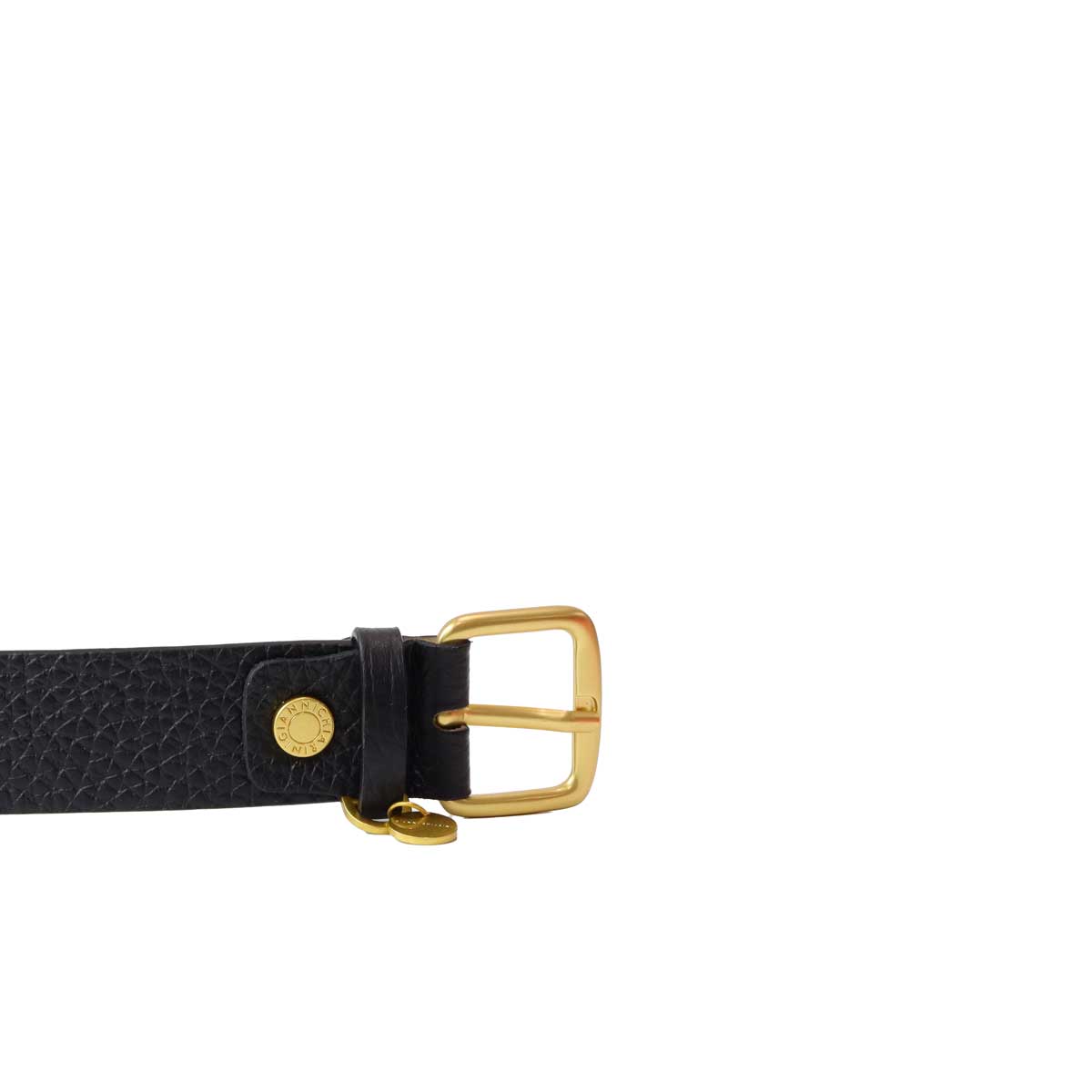Cintura nera di GIANNI CHARINI in pelle con effetto martellato e fibbia in metallo oro.