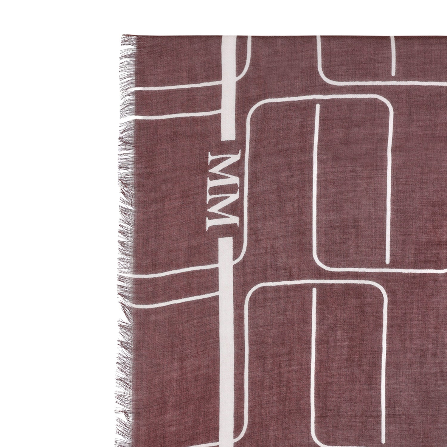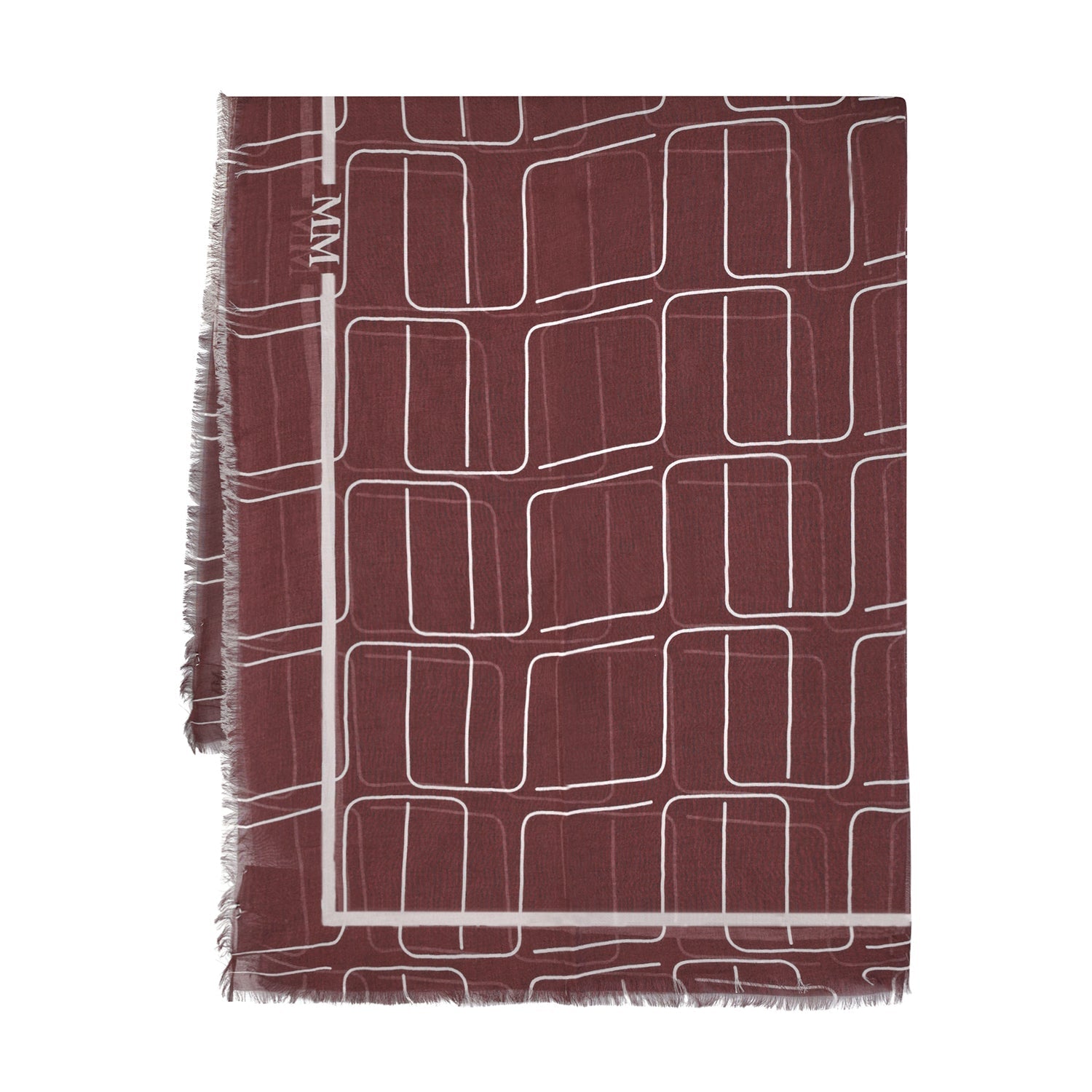 Scialle bordeaux di MM MAX MARA in misto lana con fantasia astratta beige. Misure 116x116cm.