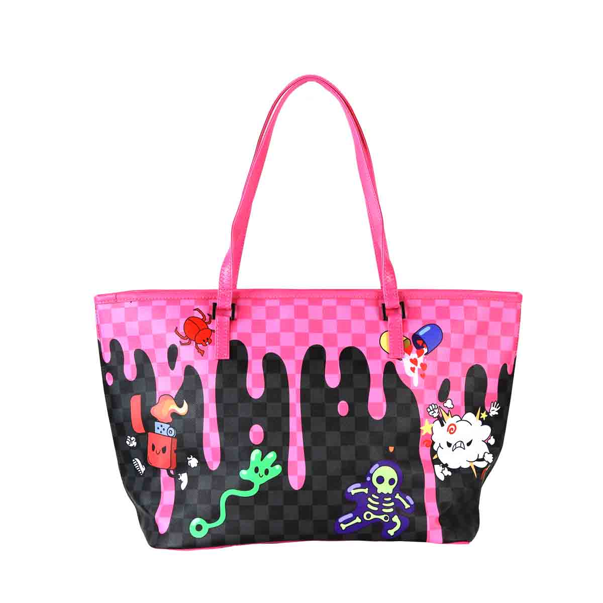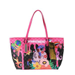 Shopping Skull rosa di SPRAYGROUND in ecopelle con stampa multicolor, chiusura con zip e doppio manico. Misure 48x29x18cm.
