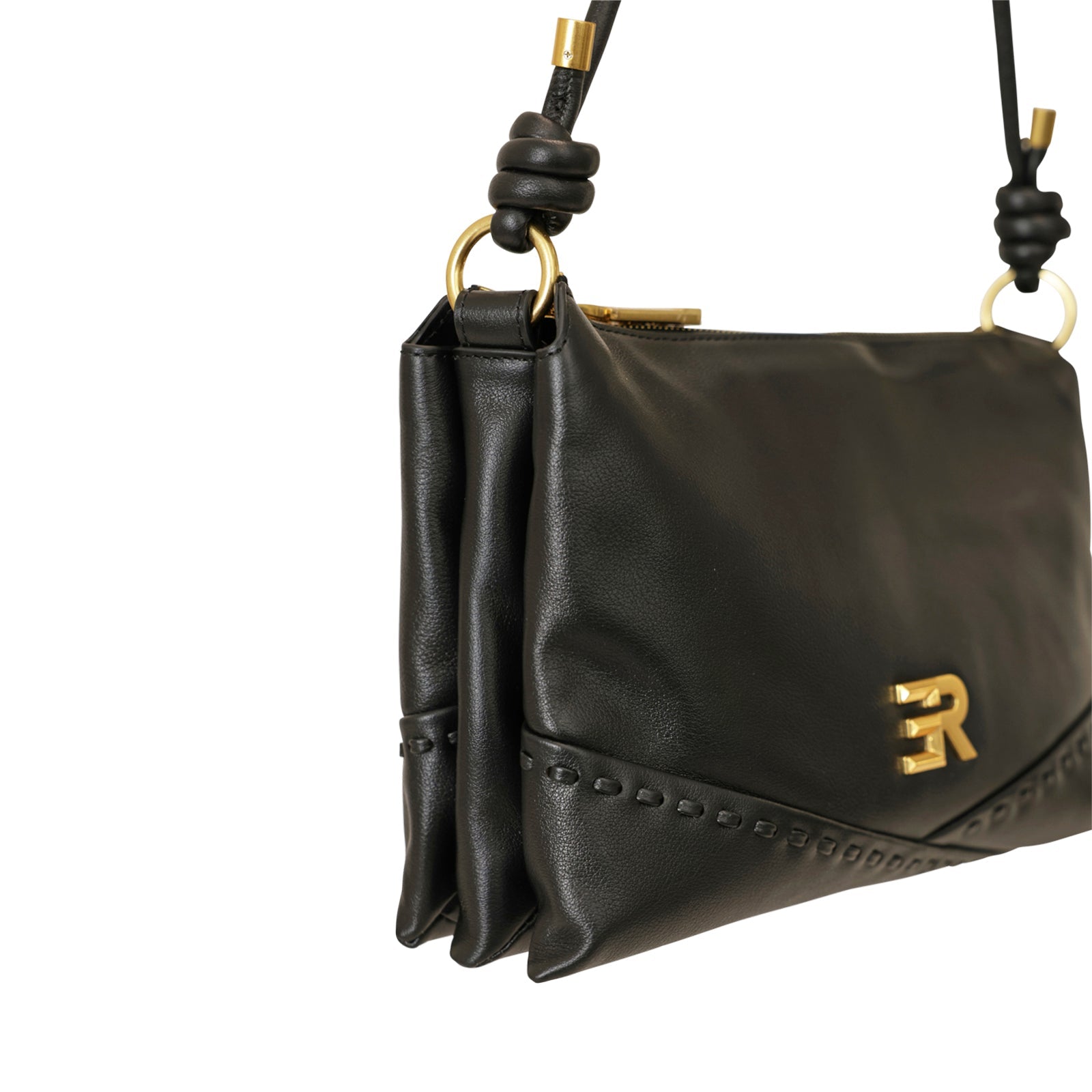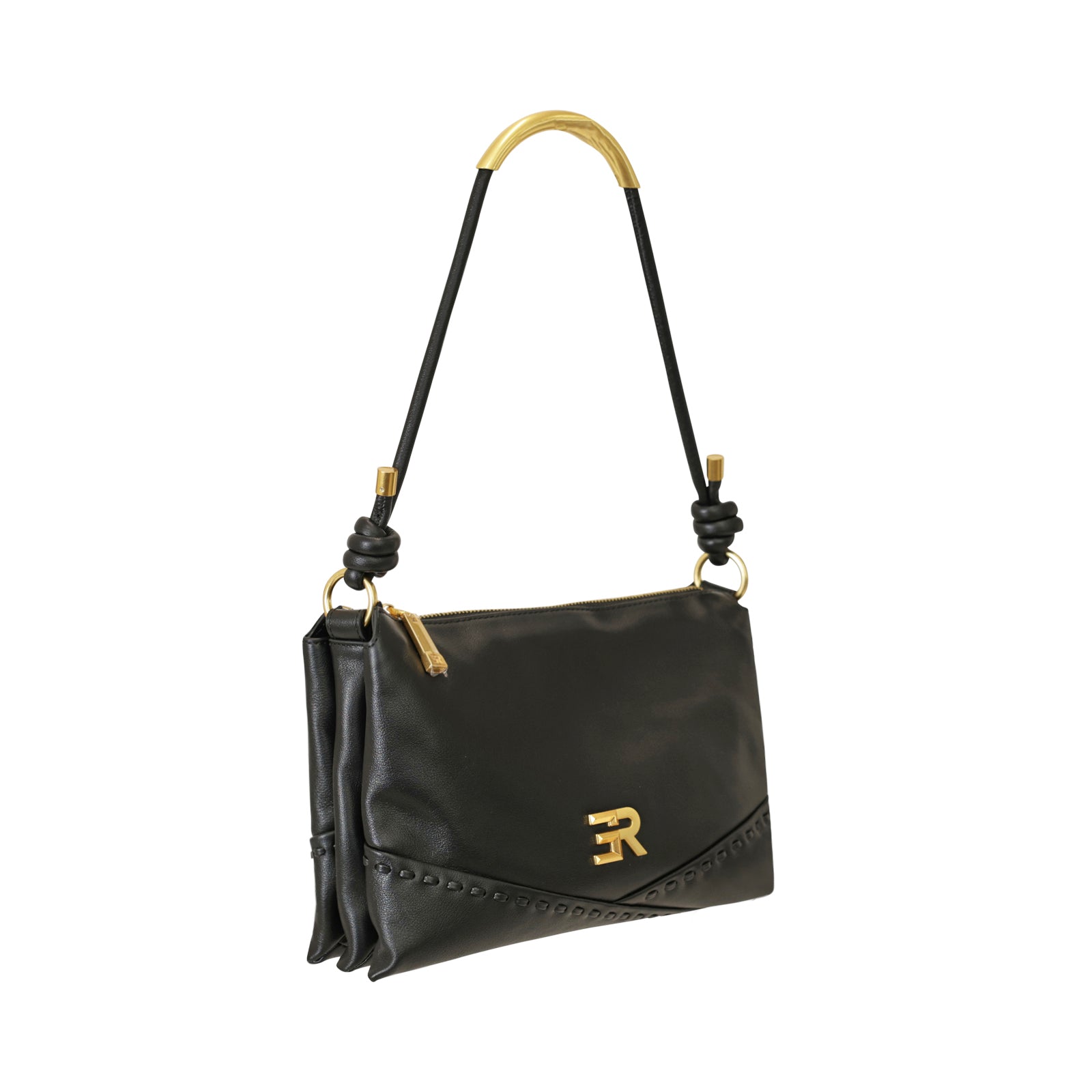 Tracolla ALICIA nera di ERMANNO SCERVINO in pelle con chiusura con zip, accessori in metallo oro. Misure 28x18x12 cm.