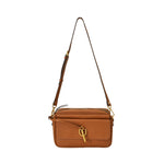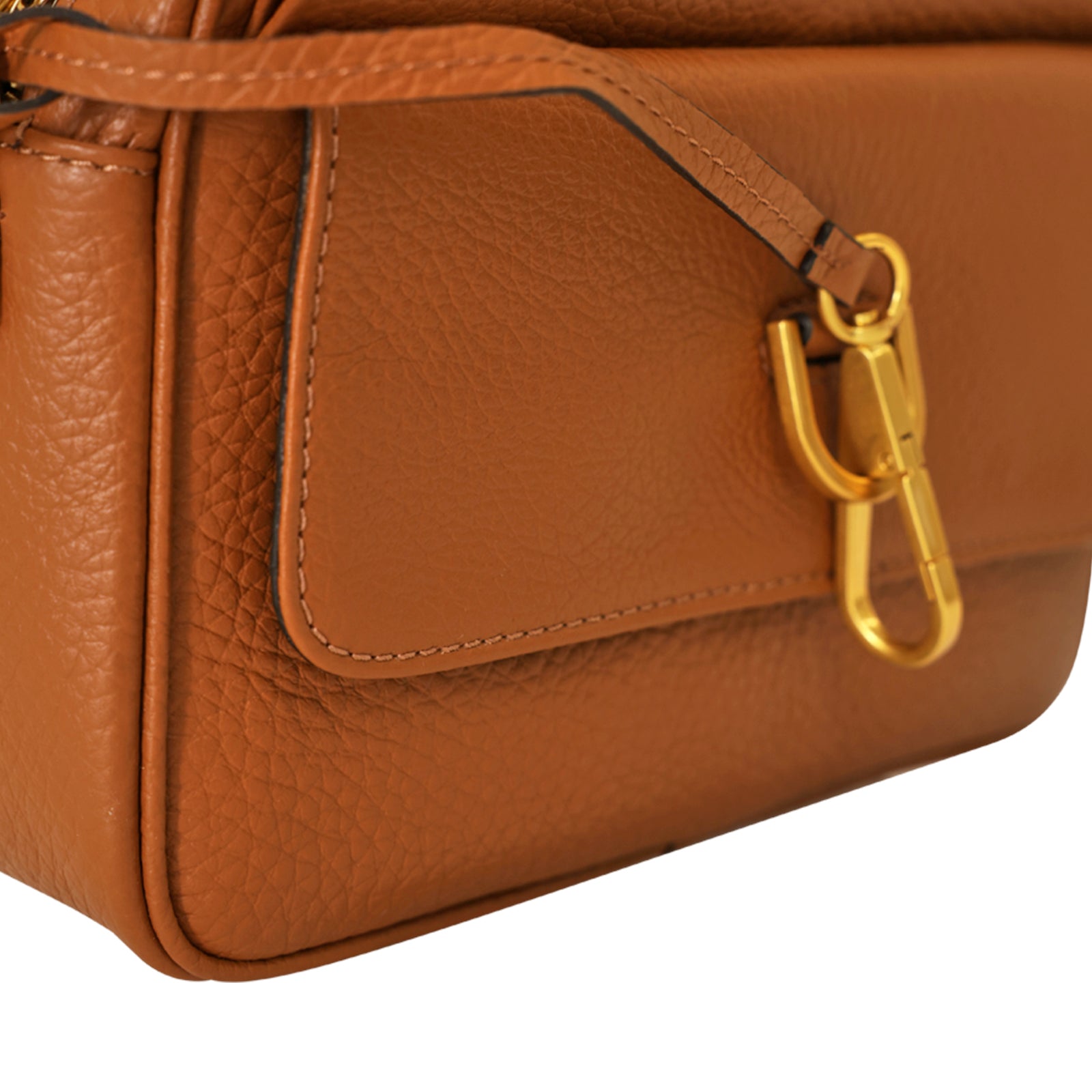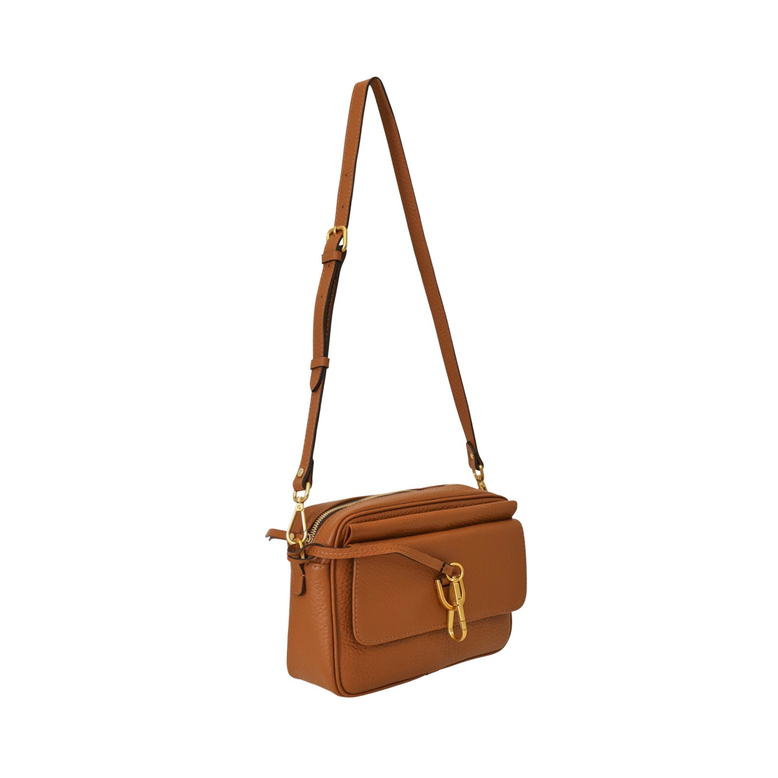 Tracolla cuoio di GIANNI CHIARINI in pelle con effetto martellato, chiusura con zip, tracolla, scomparta con accessorio in metallo e patta. Misure 28x20x8 cm.