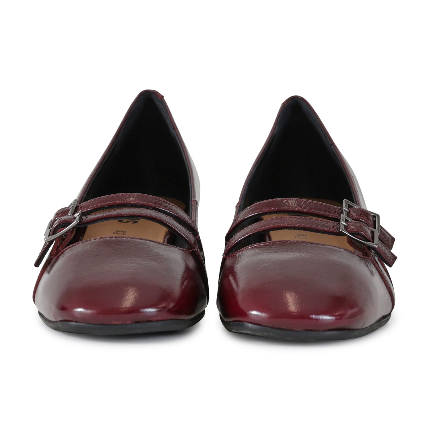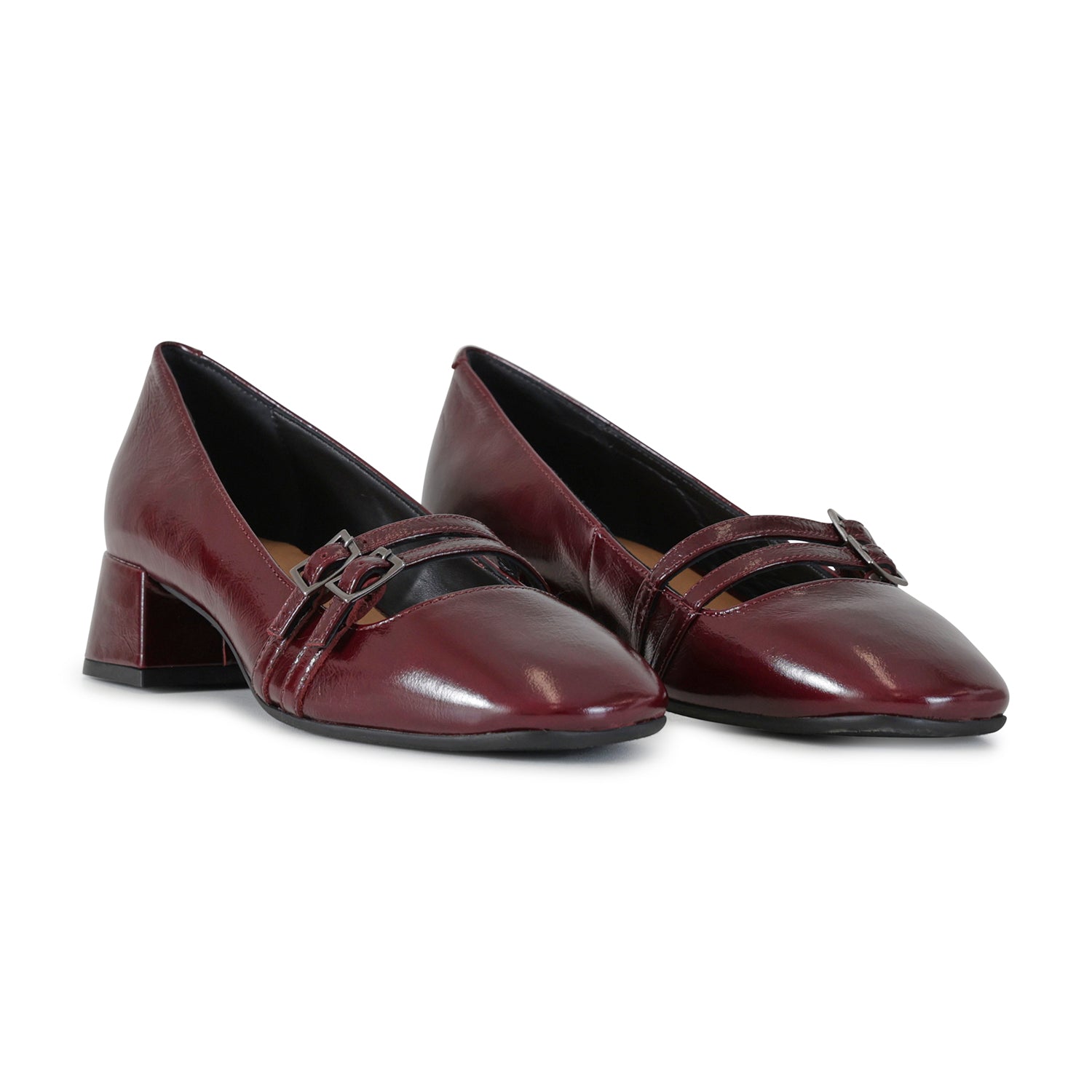 Decollette bordeaux di CARMENS in vernice con doppia fibbia, punta leggermente quadrata e tacco 30mm.