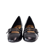 Decollette ROSE STRAPS nero di CARMENS in vernice con punta leggermente quadrata e fibbiette. Tacco 30mm, fondo in gomma.