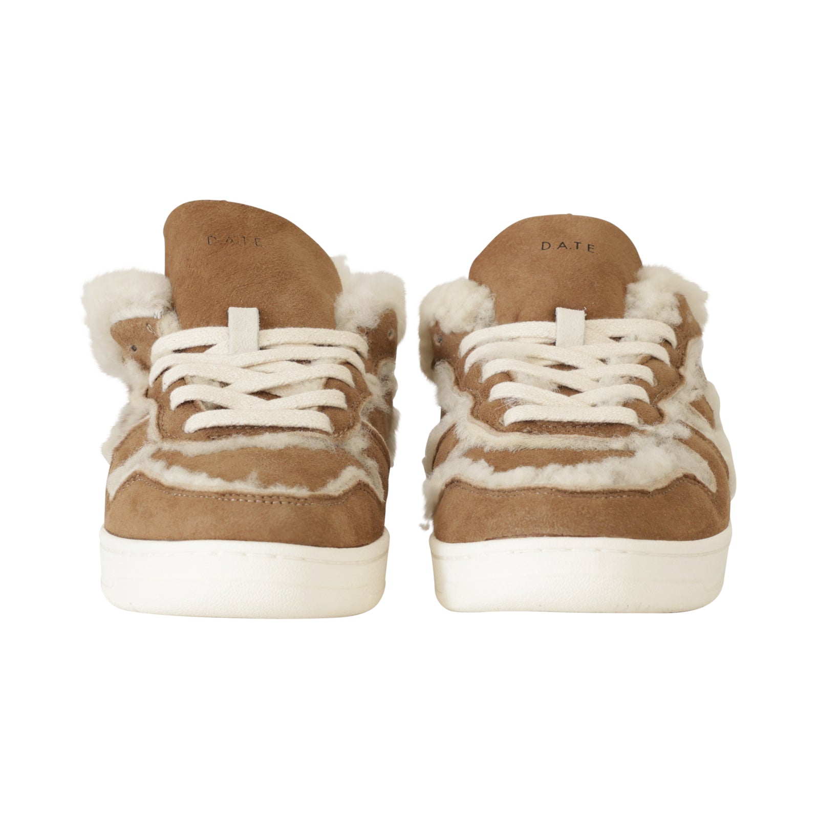 Sneakers COURT 2.0 cuoio di DATE in montone con ecopelliccia interna e fondo in gomma bianca.